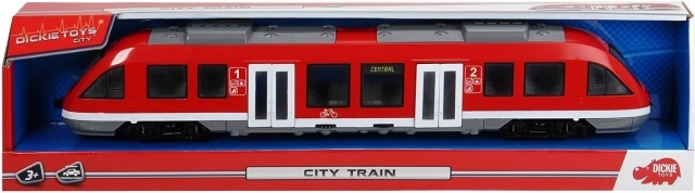 Trenul urban REGIO roșu de la DICKIE TOYS îi va încânta pe micii pasionați de cale ferată. Oferă uși care se deschid acționate cu un rotiț, roți libere pentru o deplasare lină pe suprafețe plane și un interior detaliat cu scaune și cabina mecanicului. Jucărie ideală pentru copii de la 3 ani, cu accent pe realism și durabilitate.