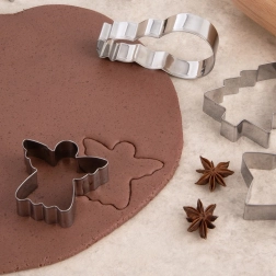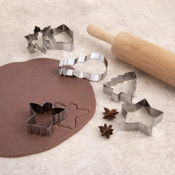 Datorită utilizării universale, vei realiza cu ușurință nu doar biscuiți și turtă dulce, ci și decorațiuni din fondant, mini sandvișuri, jeleu, brânză sau fructe moi. După utilizare, pune-le pur și simplu în mașina de spălat vase. Setul este livrat pe un carton decorativ în formă de om de zăpadă – o idee grozavă de cadou de Crăciun pentru iubitorii de copt în casă.