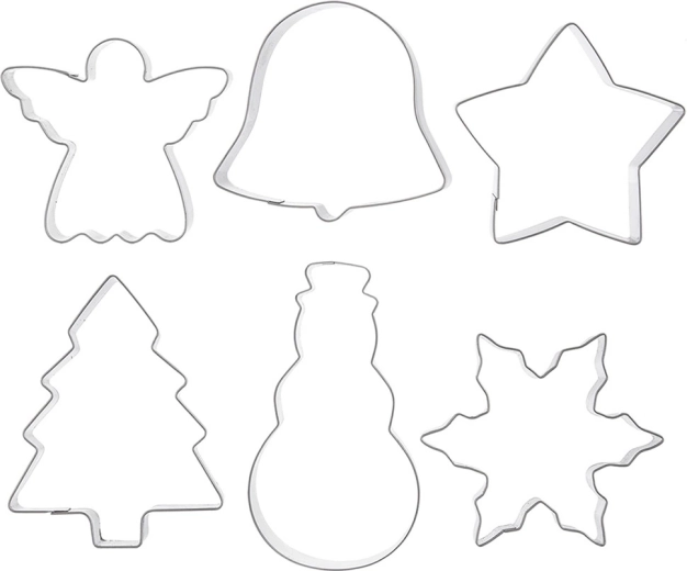 Descoperă bucuria coacerii cu un set elegant de 6 decupatoare din oțel inoxidabil de calitate. Formele de stea, brăduț, înger, clopoțel, fulg de zăpadă și om de zăpadă creează contururi perfect clare și o atmosferă festivă pe masa ta. Decupatoarele sunt solide, durabile și, cu îngrijirea corectă, te vor ține ani de zile.