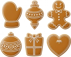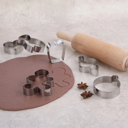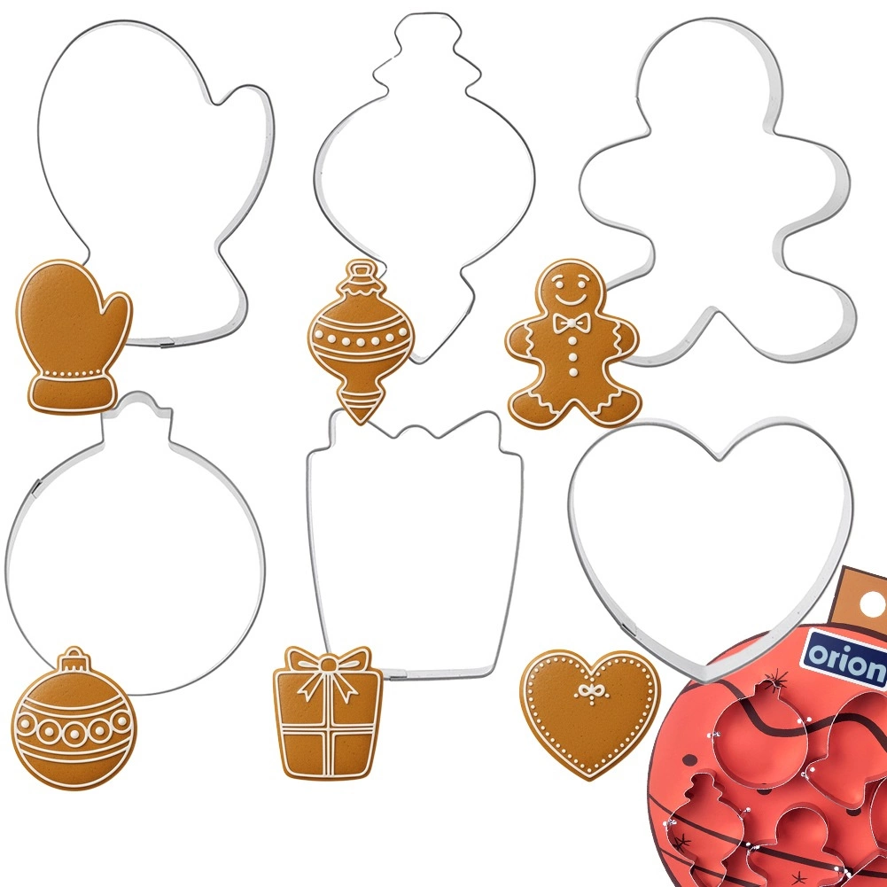 Acest set conține șase motive populare – mănușă, ornament alungit, figură de turtă dulce, glob rotund, cadou și inimă. Decupatoarele din oțel inoxidabil de calitate sunt solide, rezistente și creează linii precise fără a zdrențui aluatul. Datorită marginilor tăietoare netede vei decupa cu ușurință forme uniforme pentru prăjituri cu aspect perfect.