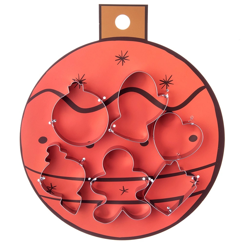 Setul include forme festive îndrăgite și este fixat pe un carton decorativ în formă de ornament – o idee grozavă de cadou de Crăciun pentru iubitorii coptului acasă.