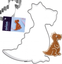 Formă de decupat din inox, amuzantă, în formă de dinozaur, pentru coacerea ușoară a biscuiților și turtelor dulci. Ideală pentru copt în familie, decorarea torturilor și gătit creativ. Fabricată din oțel inoxidabil de calitate, este rezistentă, are margini netede pentru utilizare în siguranță și poate fi spălată în mașina de spălat vase. Dimensiuni 6,5 × 5,5 × 1,5 cm.