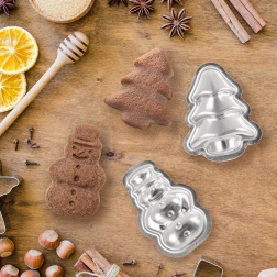 Cu acest set de forme veți crea cu ușurință prăjituri festive în formă de brăduț – de la fursecuri fragede și turtă dulce până la praline de ciocolată. Materialul de calitate asigură transfer rapid al căldurii și un aluat copt uniform fără arsuri. Formele sunt potrivite și pentru prăjituri tridimensionale, care pot fi lipite cu cremă în piese închise de efect.