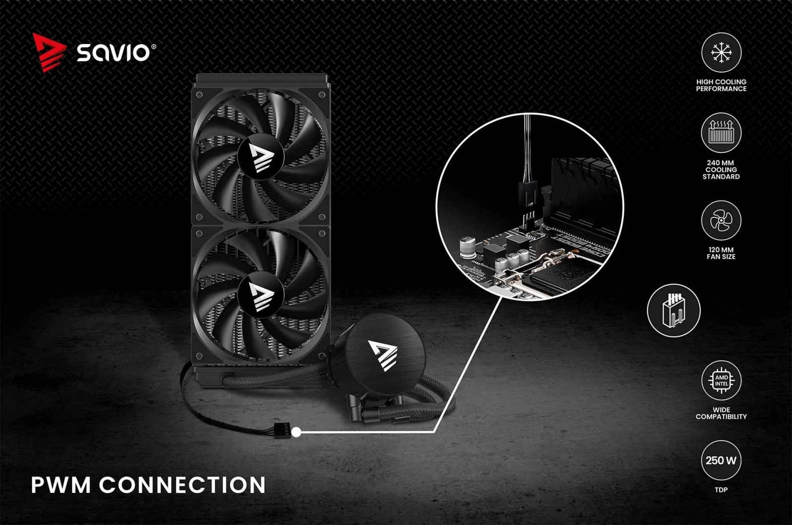 Sunt incluse 2× ventilatoare PWM de 120 mm cu un interval larg de turații pentru flux de aer optim și zgomot redus. Controlul PWM cu 4 pini permite reglarea automată în funcție de temperatura CPU, în timp ce alimentarea pompei cu 3 pini asigură instalare simplă și funcționare stabilă.
