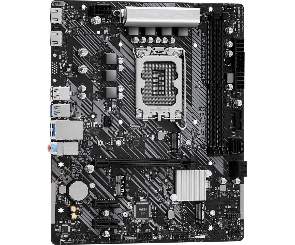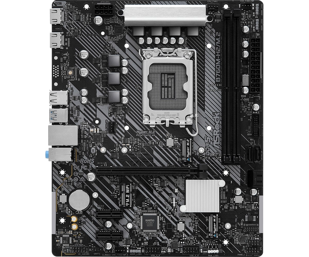 ASRock B760M-H2/M.2 combină alimentarea stabilă, stocarea rapidă și opțiunile largi de conectare într-un format economic microATX. Suportul pentru memorie DDR5 Dual Channel cu frecvențe de până la 7200+ (OC) și slotul PCIe 4.0 x16 pentru plăci grafice moderne asigură performanță ridicată și pe viitor.