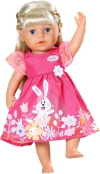 Imprimeul vesel cu flori și iepurași jucăuși îi oferă păpușii BABY BORN un stil unic și susține jocul imaginativ.