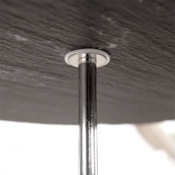 Plăcile întunecate din ardezie, cu textură naturală, și tija metalică solidă cu aspect elegant asigură durabilitate și stabilitate la servire.