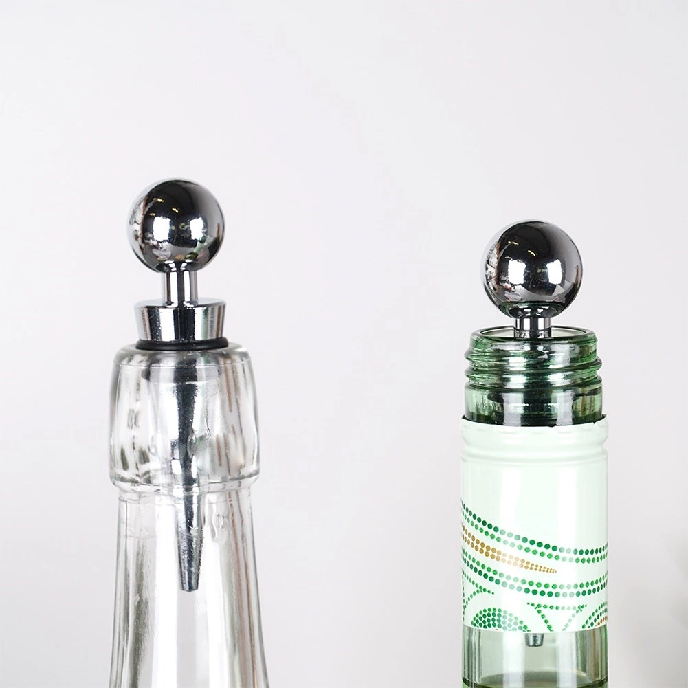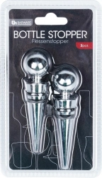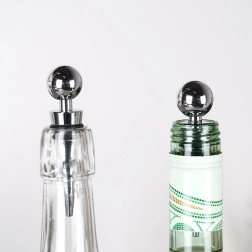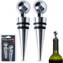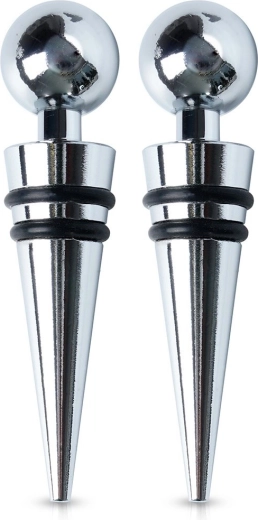 Păstrați băuturile preferate proaspete mai mult timp. Setul de două dopuri din oțel inoxidabil cromat cu două inele de etanșare din silicon sigilează fiabil gâtul sticlei și previne oxidarea și pierderea perlajului. Capul sferic asigură montare și demontare confortabilă dintr-o singură mișcare.