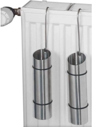 Set practic de doi umidificatoare din oțel pentru radiator, cu volum de 300 ml, care asigură în sezonul de încălzire umidificare naturală a aerului. Este suficient să le umpleți cu apă, să le agățați pe radiator și să vă bucurați de o umidificare confortabilă și silențioasă fără electricitate. Oțelul inoxidabil și designul simplu se potrivesc în orice interior.