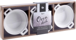 Setul de 3 boluri rotunde pentru copt, din porțelan alb de calitate, completează elegant orice bucătărie și masă. Datorită dimensiunilor compacte (aprox. 13 × 10 × 4 cm) și a volumului de 130 ml, sunt ideale pentru coacerea și servirea porțiilor individuale, de la deserturi la garnituri gratinate.