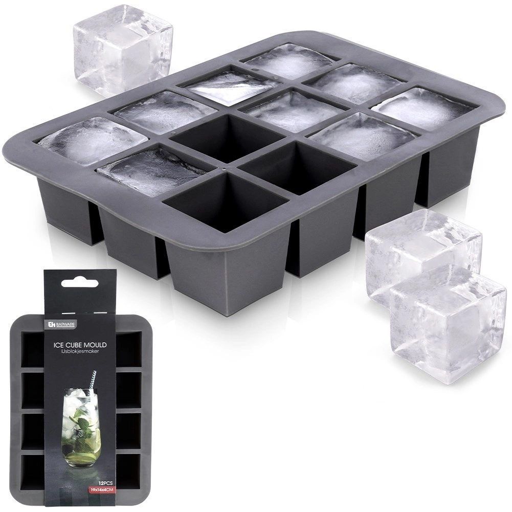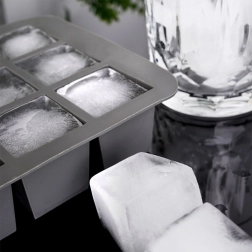 Forma creează 12 cuburi pătrate de 3,5 cm, care răcesc băutura mai mult timp și o diluează mai puțin – ideale pentru whisky, cocktailuri și limonade.