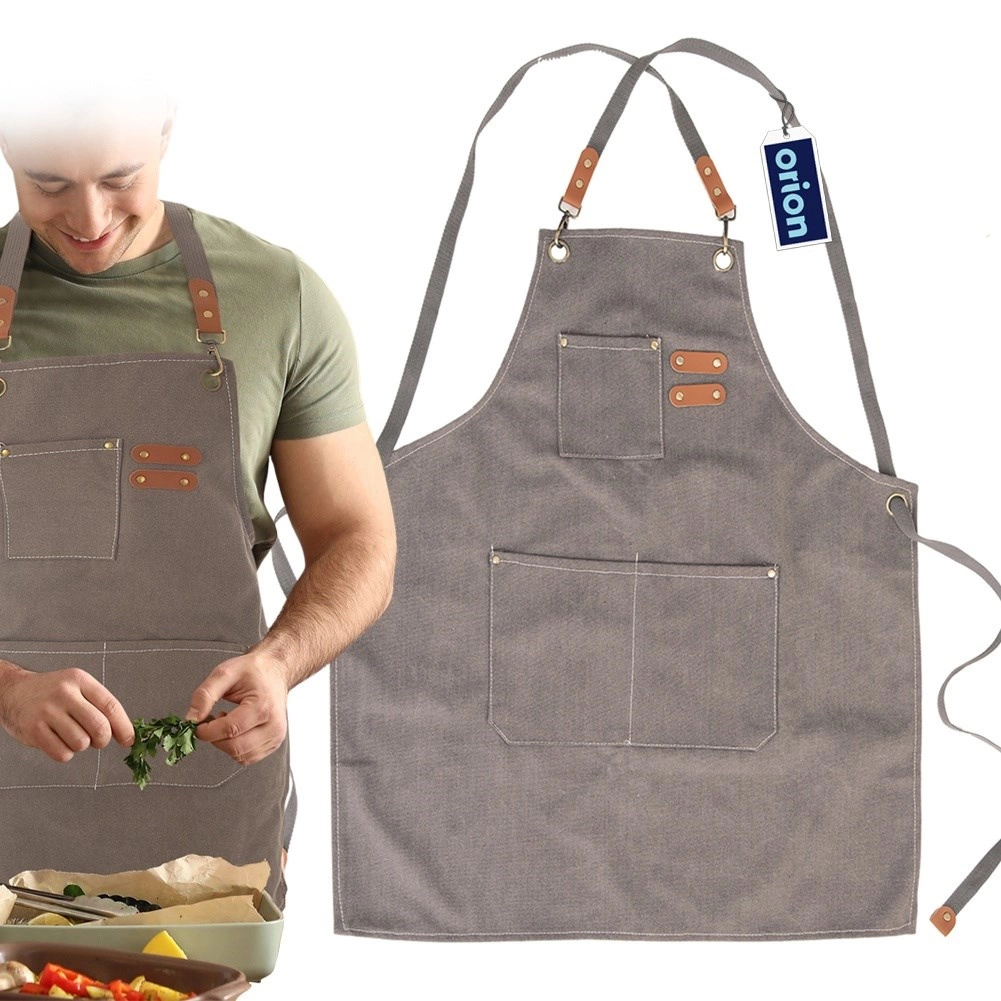 Căutați un șorț funcțional și confortabil pentru bucătărie, grătar și atelier? Acest șorț maro, cu dimensiuni de 68 × 74 cm, oferă bretele ergonomice încrucișate, care distribuie greutatea și mențin șorțul în siguranță pe poziție chiar și la mișcare intensă. Țesătura mixtă este durabilă, plăcută la atingere și ușor de întreținut.