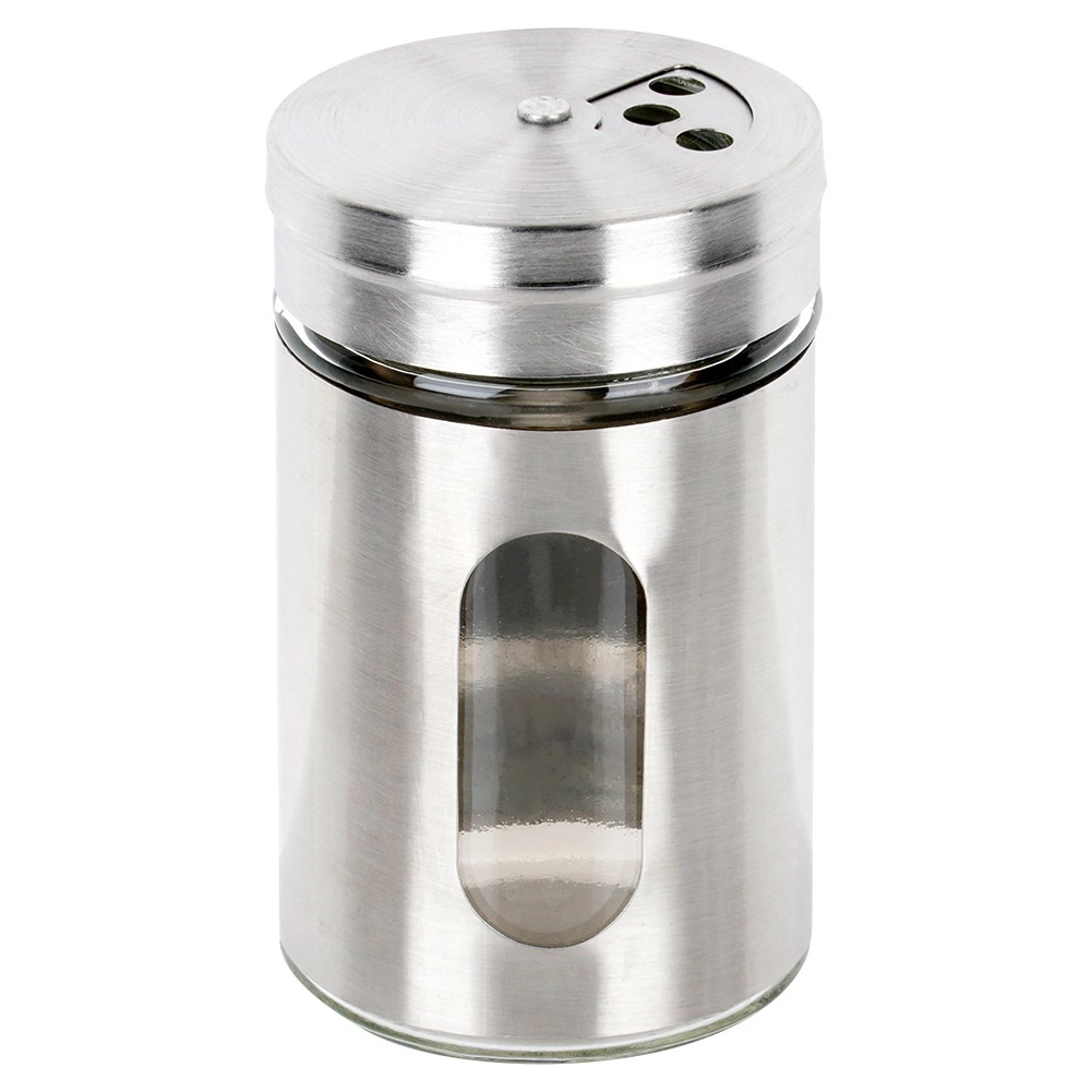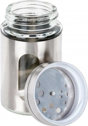 Recipient universal pentru condimente din sticlă rezistentă, cu înveliș și capac din inox, ideal pentru condimente, zahăr, decoruri și ierburi. Capacul rotativ oferă reglare în trei trepte – presărare fină, dozare medie sau turnare rapidă a unei cantități mai mari. Datorită ferestrei transparente aveți mereu control asupra conținutului și a cantității.