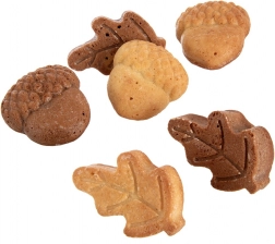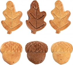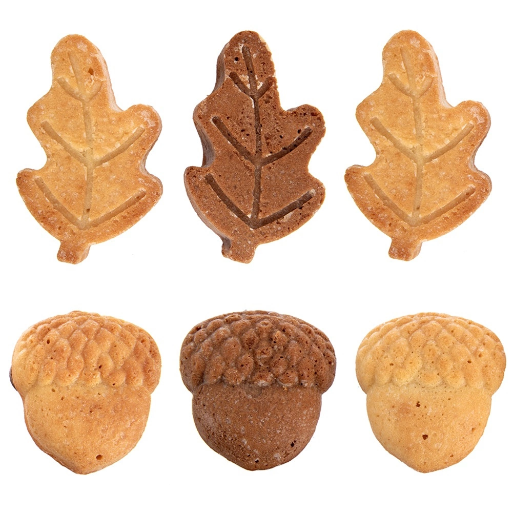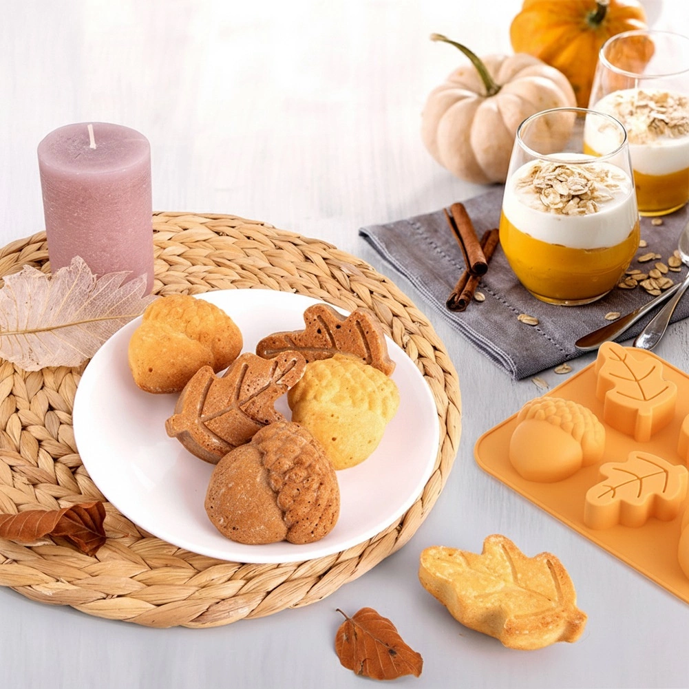 Șase cavități în formă de frunze și ghinde creează mini deserturi decorative, cu contururi clare și suprafață netedă, care impresionează din prima clipă.