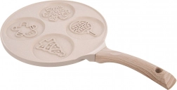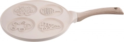 Bucurați-vă de gătit ușor și rapid cu tigaia de 26 cm diametru și patru forme (Ø 10 cm), care dau porților o formă perfect rotundă cu relief de motive festive. Suprafața din granit antiaderent asigură rumenire uniformă fără ardere și cu minimum de ulei.