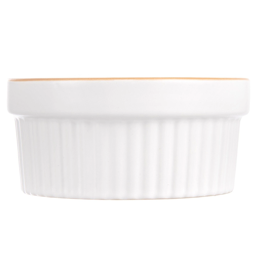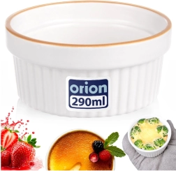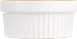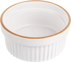 Bol ceramic practic pentru copt, cu un volum de 290 ml și un diametru de 11,5 cm, ideal pentru crème brûlée, soufflé, preparate coapte mini și deserturi. Ceramica rezistentă cu glazură albă și margine maro asigură coacere uniformă și servire elegantă. Potrivit pentru cuptor (până la 200 °C), microunde și mașina de spălat vase.