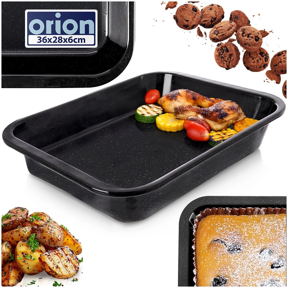 Tava emailată pentru copt ORION este un ajutor de încredere în orice bucătărie. Datorită oțelului robust cu strat emailat de calitate, distribuie excelent căldura, rezistă la temperaturi ridicate și este ușor de întreținut. Pereții înalți împiedică scurgerea sucurilor și facilitează manipularea.
