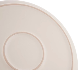 Silusetă minimalistă cu margine ușor ridicată și finisaj crem mat care înnobilează orice mese.