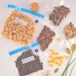 Pungile cu câmp de etichetare ajută la sortarea alimentelor – de la carne și legume până la nuci. Excelente pentru pregătirea meselor și ordine în bucătărie.
