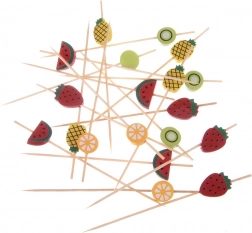 Fiecare scobitoare este decorată cu un topper fructat original, care oferă gustărilor un aspect jucăuș și evidențiază prezentarea canapelelor, brânzeturilor sau fructelor.