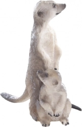 Această figurină de suricat, realizată cu atenție la detalii, reproduce fidel aspectul îndrăgiților locuitori ai savanei. Datorită structurii realiste a „blănii” și colorării aplicate cu grijă, devine o decorațiune atrăgătoare pentru camera copilului, living sau birou.