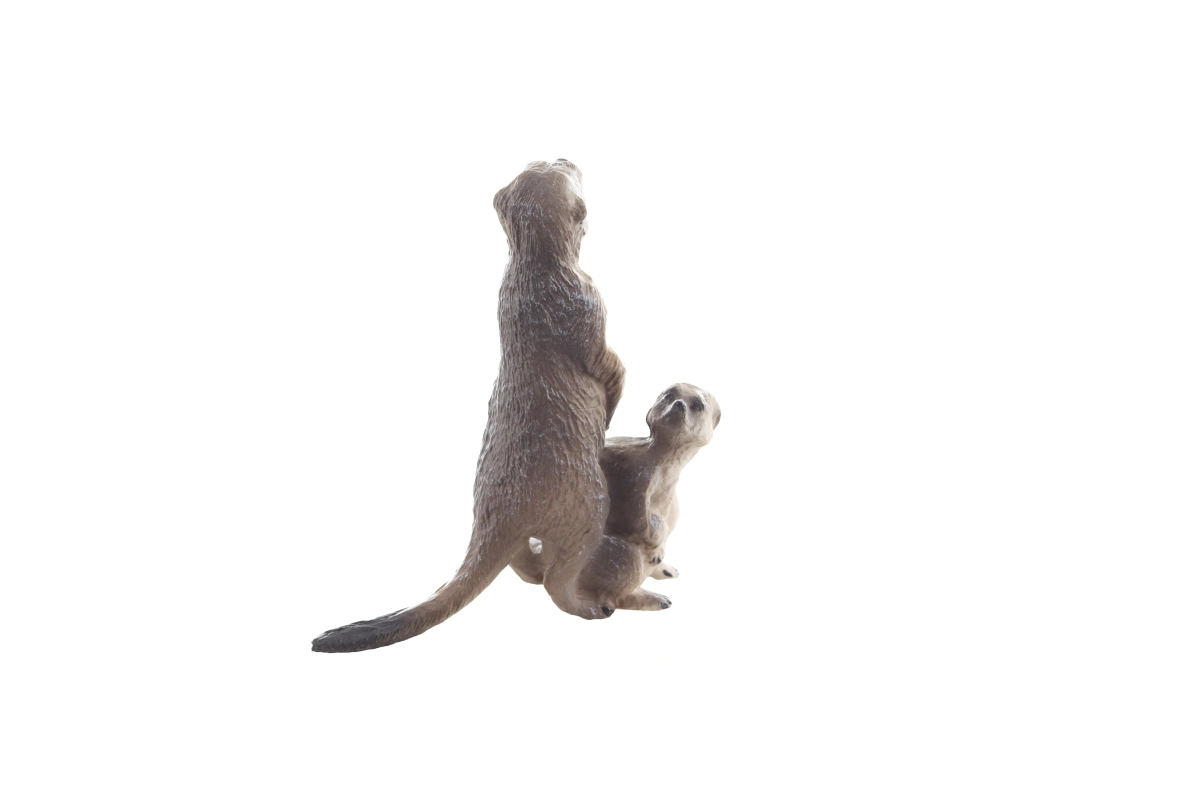 Figurina surprinde fidel postura și expresia suricatelor, cu umbrire precisă și textură pentru un aspect natural acasă sau în camera copilului.