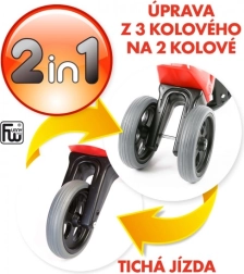 Începeți în configurația stabilă de tricicletă și treceți oricând la varianta pe două roți pentru antrenarea echilibrului. În pachet se găsesc imbusurile și axul mai scurt.