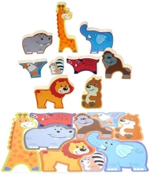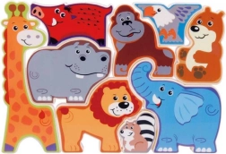 Cu acest puzzle din lemn Safari copiii descoperă farmecul sălbăticiei din confortul casei. Puzzle-ul conține nouă animale frumos colorate, inclusiv un leu, o girafă și un elefant, fiecare proiectat pentru a se potrivi perfect în sloturile sale de pe tablă. Jucăria este concepută pentru mâinile mici ale copiilor, susținând motricitatea fină și învățarea într-un mod distractiv.