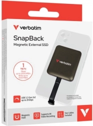 Verbatim SnapBack este un SSD extern rapid și fiabil, care datorită magneților MagSafe se fixează în siguranță pe spatele iPhone-ului. Permite înregistrare directă în format Apple ProRes 4K/60 fps fără aglomerarea memoriei interne a telefonului și accelerează fluxul de lucru mobil.