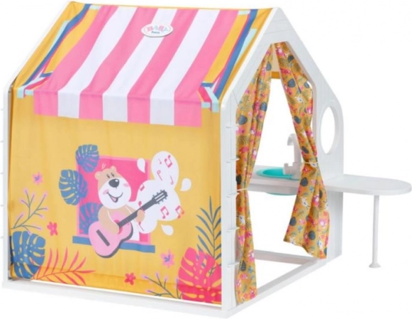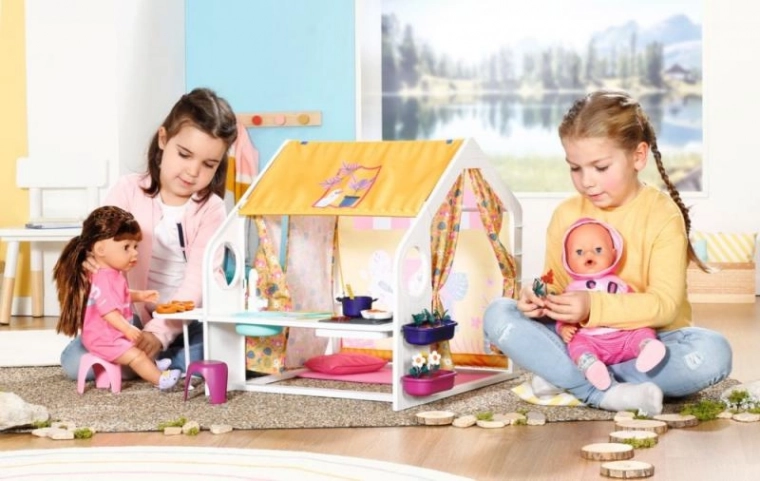 Datorită pereților pictați și decorațiunilor detaliate, căsuța permite copiilor să trăiască o experiență de glamping luxos cu păpușile BABY born.