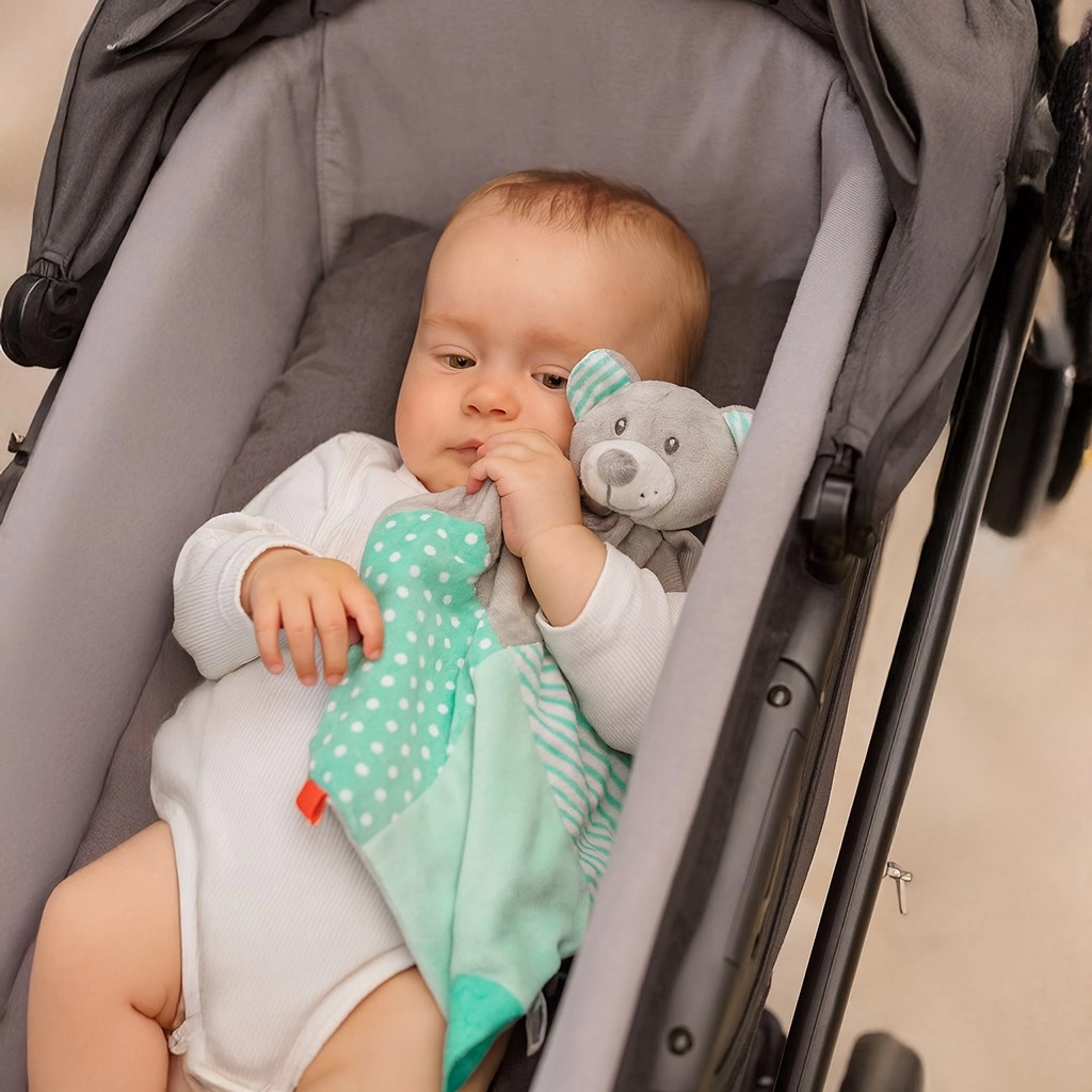 Căutați primul prieten de alint pentru bebeluș? Păturica de somn ursuleț BABY MIX în culoare mentă oferă finețe, confort și un sentiment de siguranță. Este concepută pentru a însoți copiii atât la odihnă, cât și la joacă, susținând totodată ritualurile liniștitoare de dinaintea somnului.