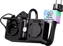 Dispozitivul este conceput pentru utilizare în exterior – construcția rezistentă IP44, materialele ignifuge (clasa V0) și protecțiile integrate împotriva suprasarcinii și supraîncălzirii sporesc siguranța. Utilă este și funcția de monitorizare a consumului pentru fiecare priză în parte, inclusiv suportul pentru monitorizarea producției din panouri fotovoltaice de balcon (priza stângă).