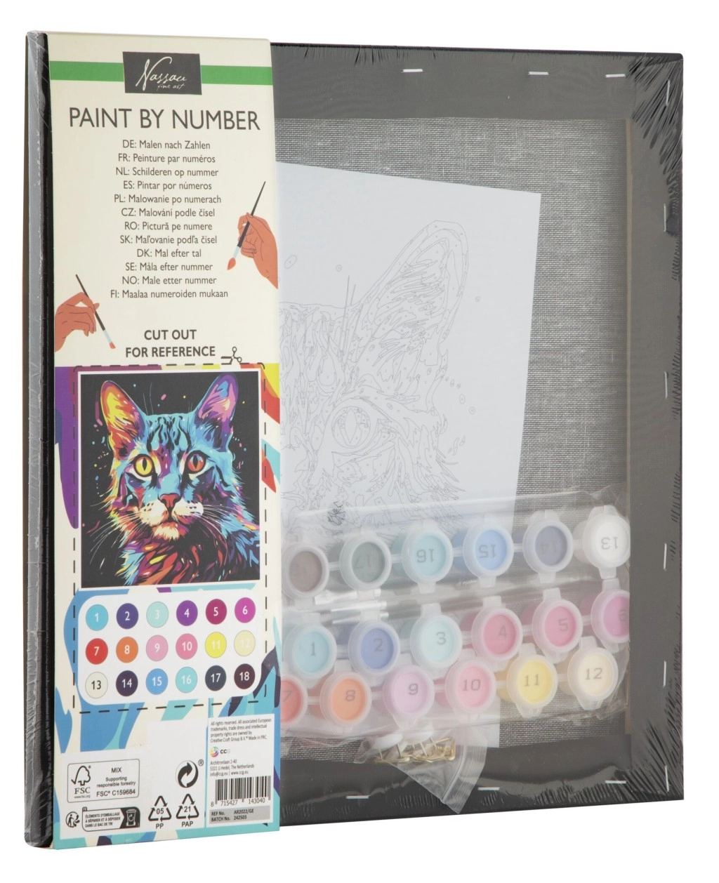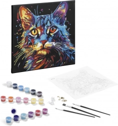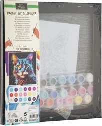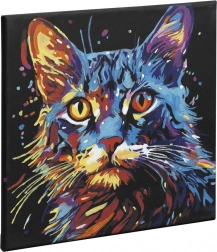 Acest set de pictură după numere este alegerea ideală pentru copii și adulți care iubesc animalele și vor să se relaxeze printr-o activitate creativă. Pânza neagră oferă motivului cu pisică un contrast pronunțat și un aspect modern, datorită căruia lucrarea finală va ieși în evidență în orice interior.