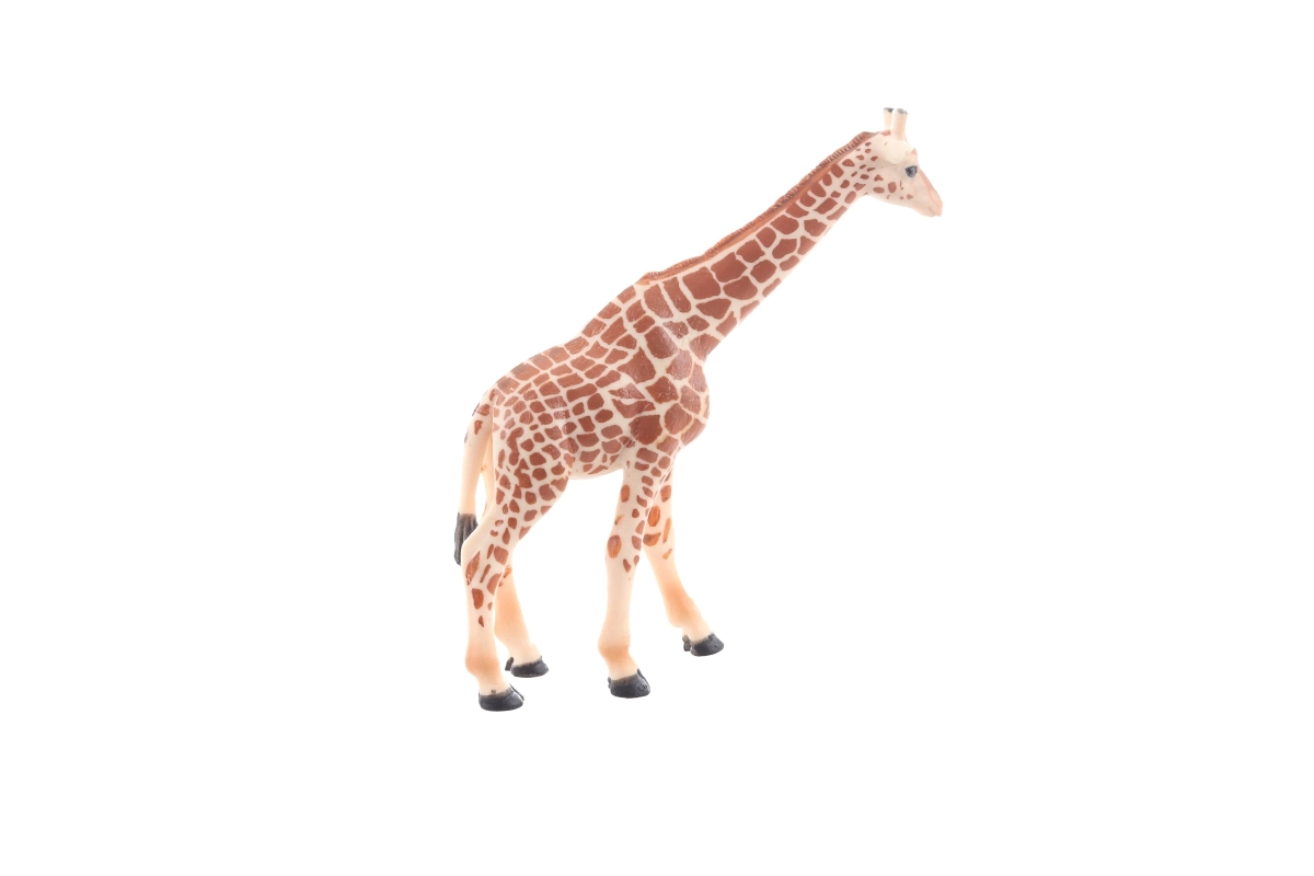 Această girafă din plastic se remarcă prin prelucrarea atentă, dungația vizibilă a blănii și poziția stabilă. Datorită dimensiunilor compacte de 14 × 11 × 3 cm, se potrivește perfect chiar și mâinilor mai mici ale copiilor și este pregătită pentru joaca zilnică acasă sau în călătorii.
