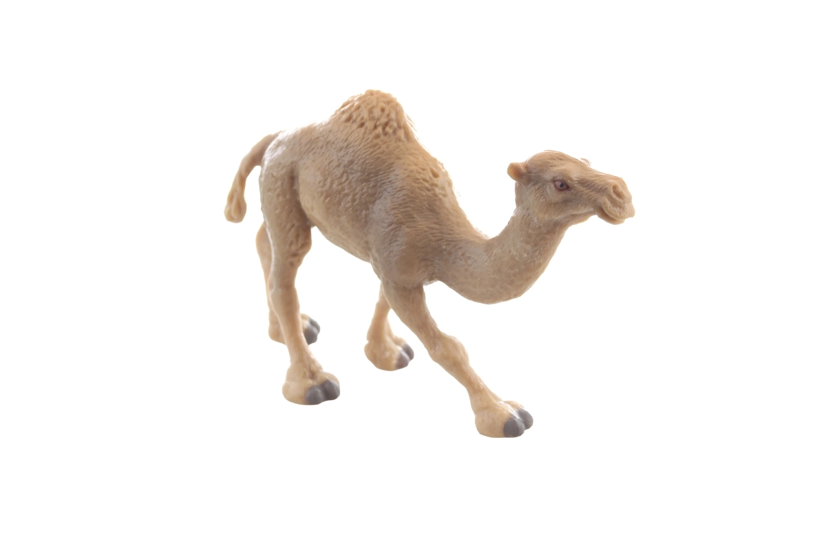 Această figurină din plastic reprezentând o cămilă cu un singur cocoaș iese în evidență prin detaliile realiste ale blănii, trăsăturilor feței și copitelor. Datorită dimensiunilor compacte de 11 × 8 × 2,5 cm, se potrivește perfect mâinilor copiilor și stimulează imaginația și cunoașterea lumii animalelor.