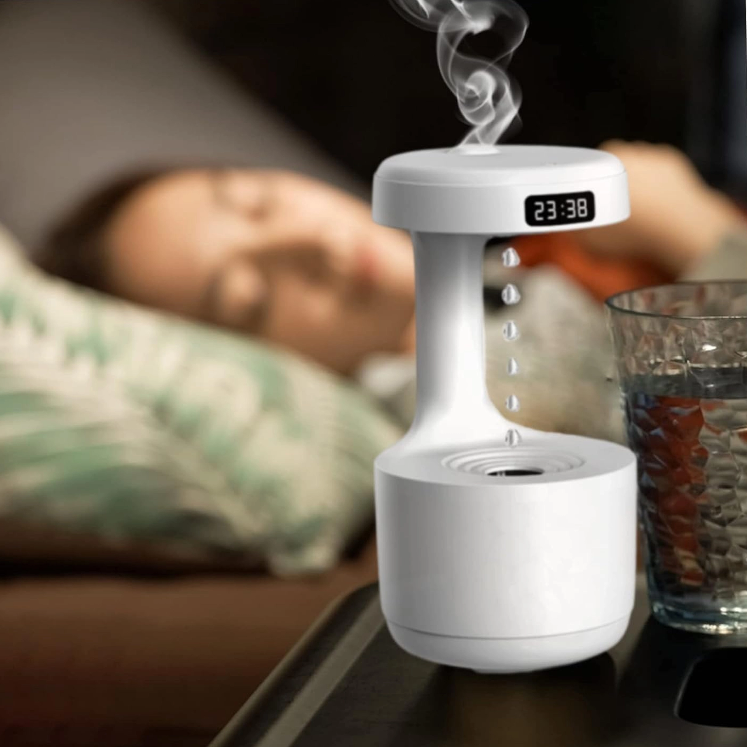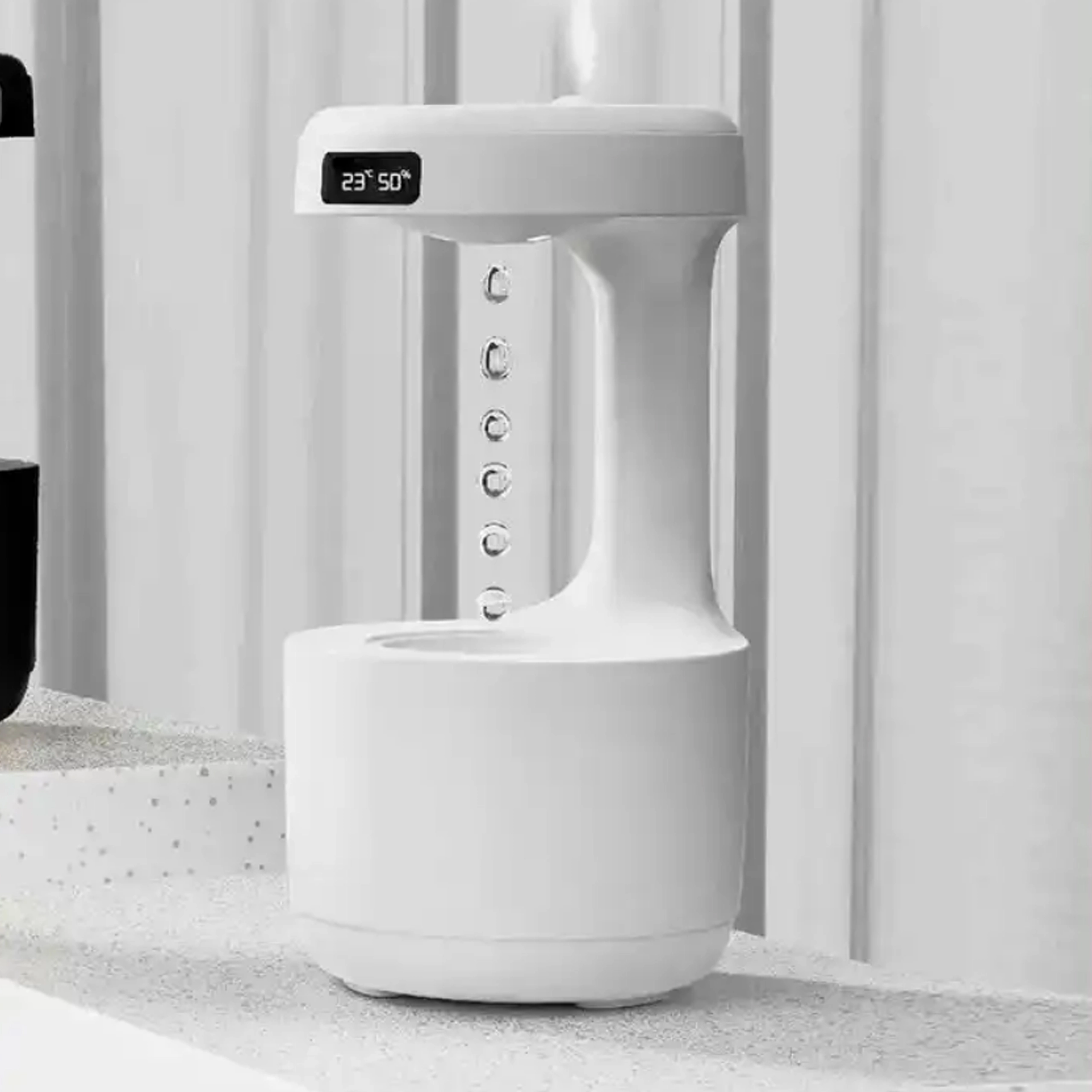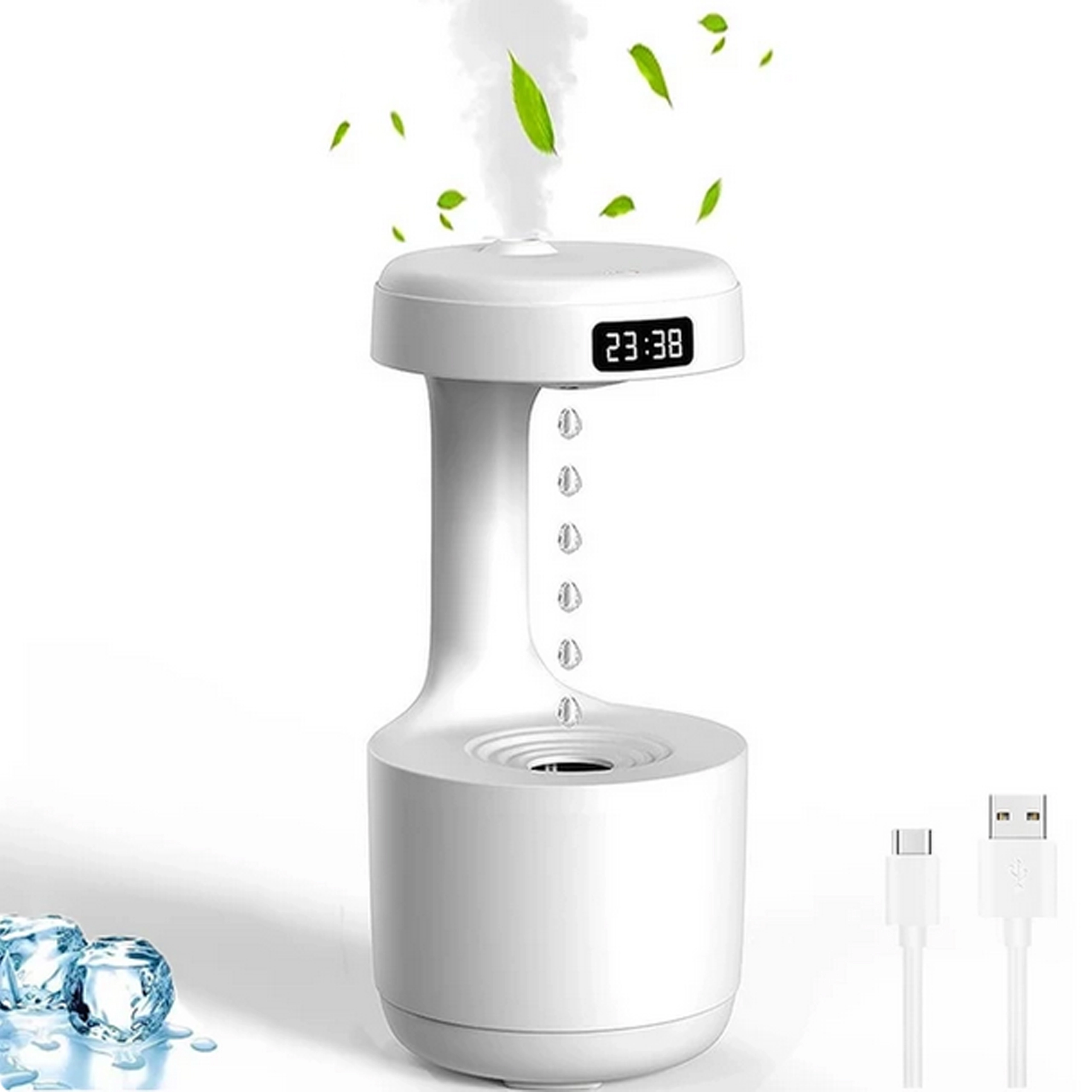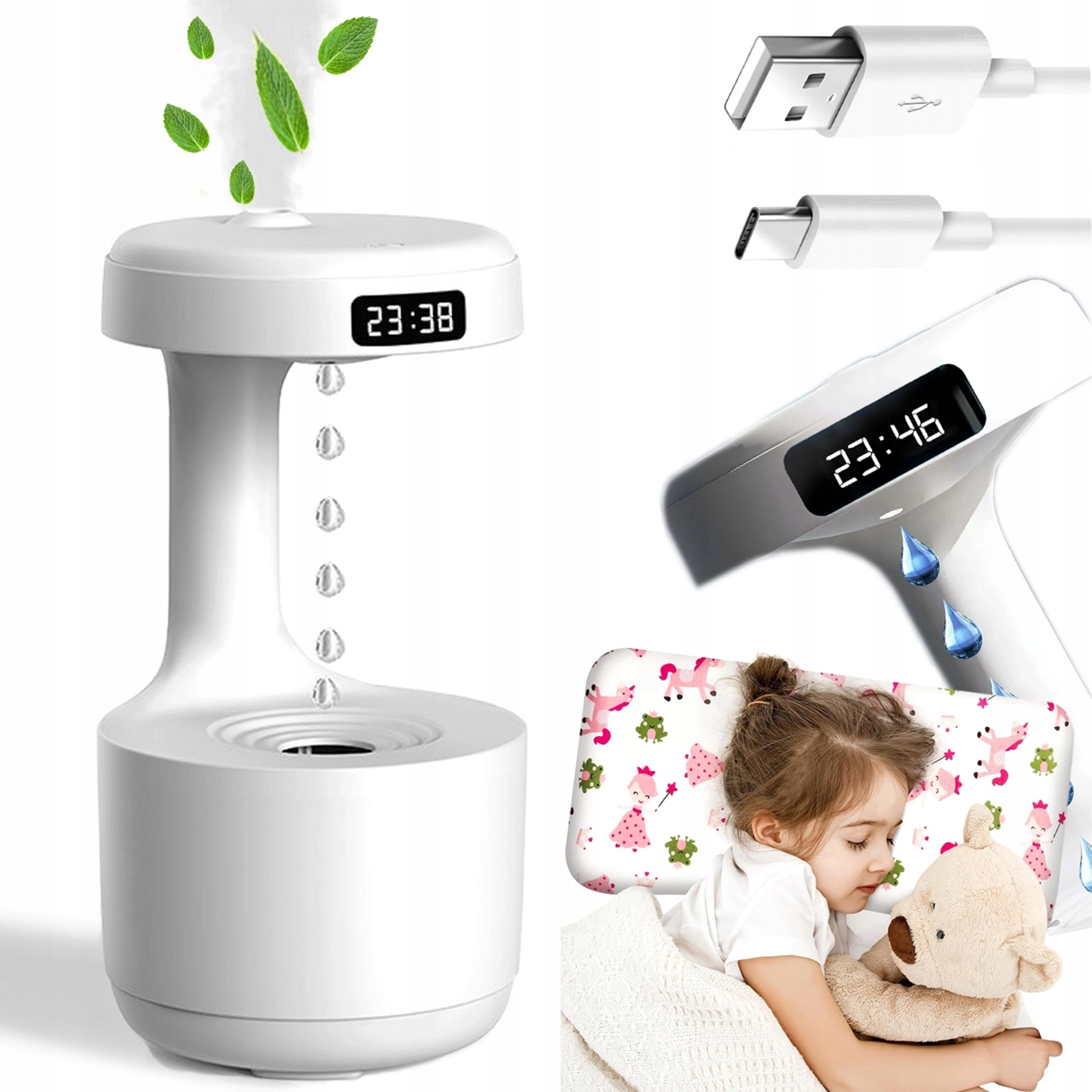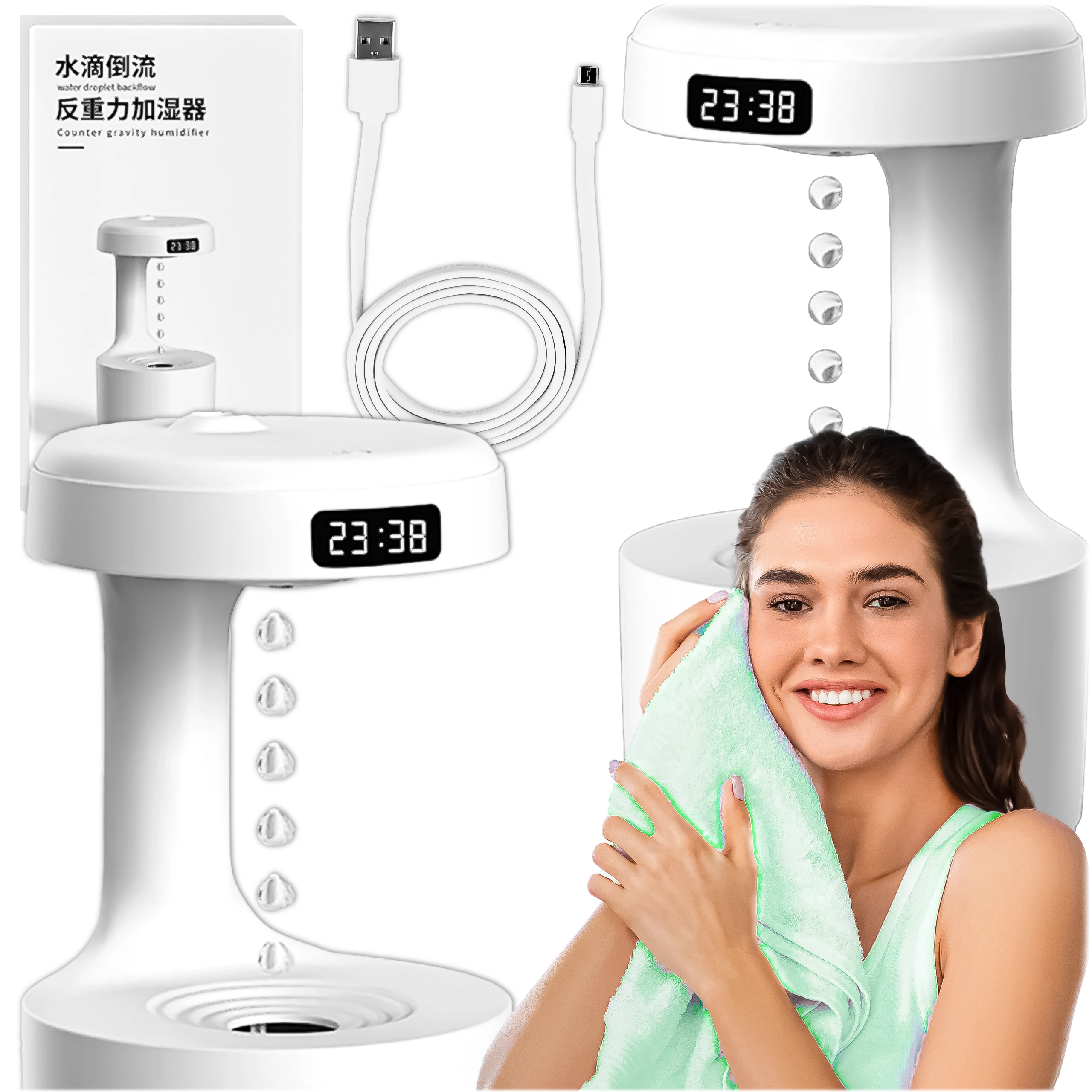 Umidificatorul de aer antigravitațional oferă un efect vizual captivant al „picăturilor ascendente” și, în același timp, crește eficient umiditatea în interior. Datorită tehnologiei avansate, produce o ceață fină care ajută la ameliorarea aerului uscat, a iritațiilor mucoaselor și facilitează respirația atât ziua, cât și noaptea. Afișajul LED integrat afișează ora și starea, în timp ce funcționarea silențioasă nu deranjează somnul.
