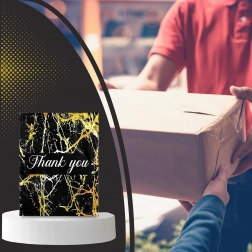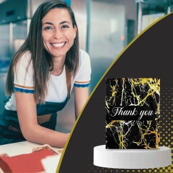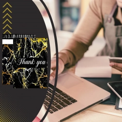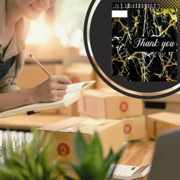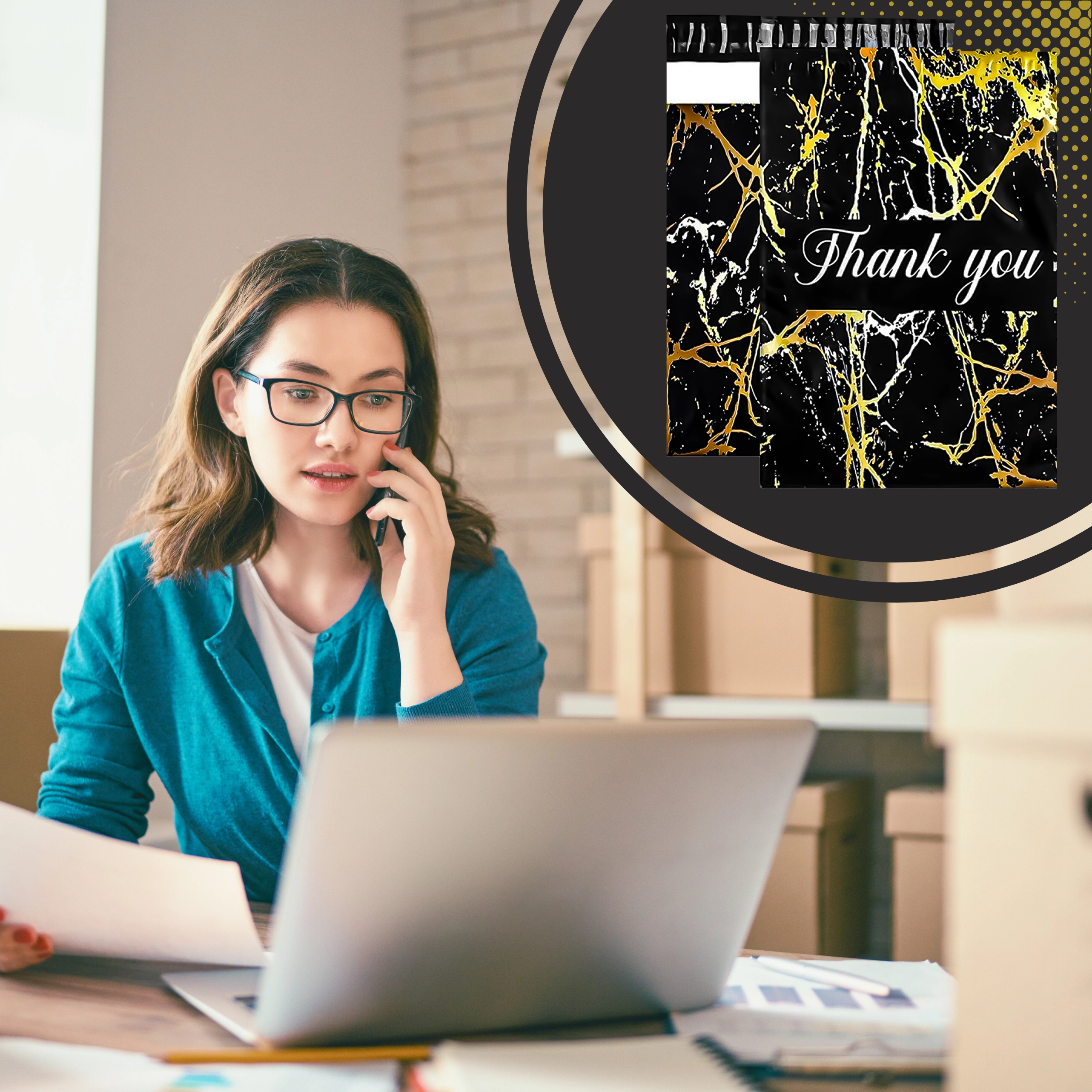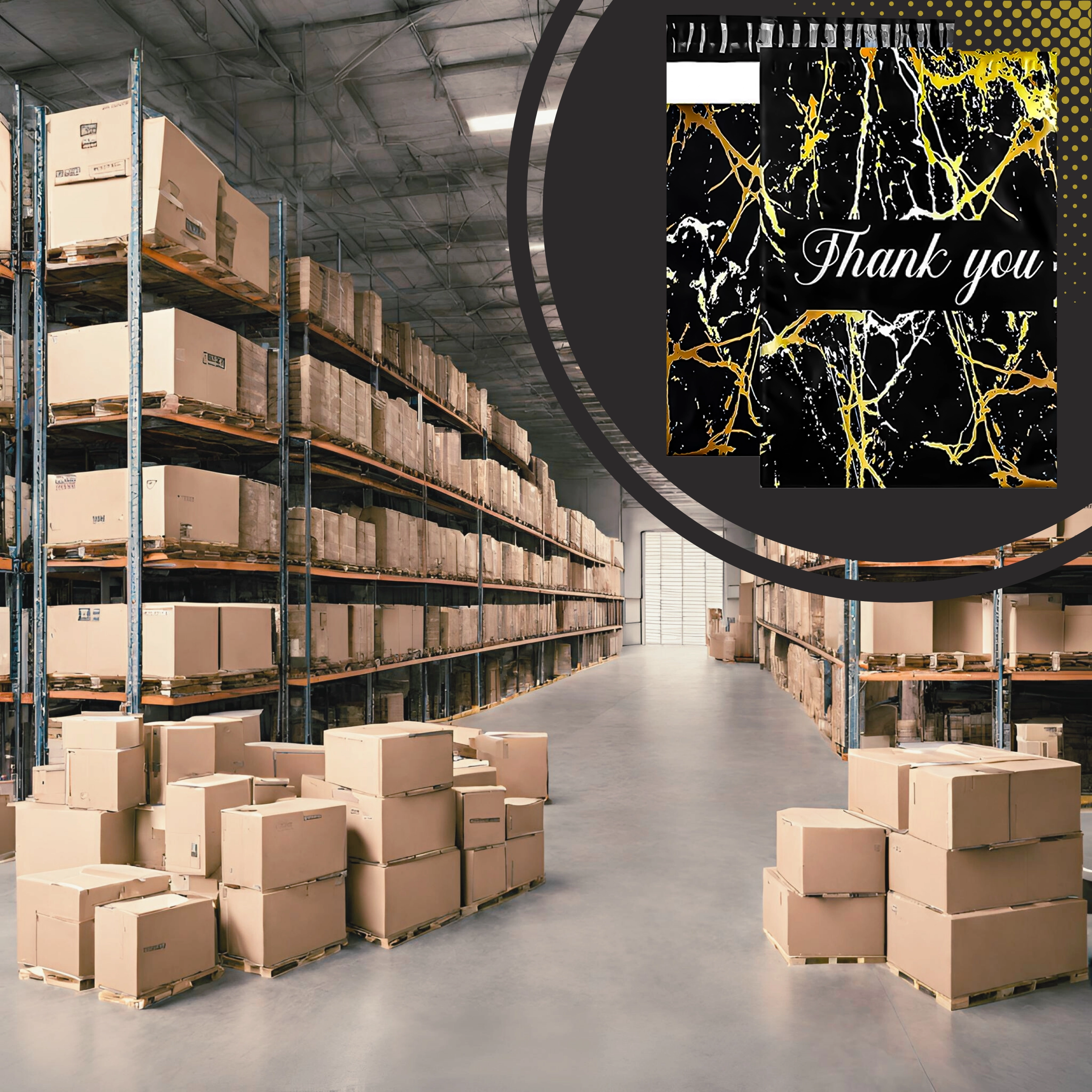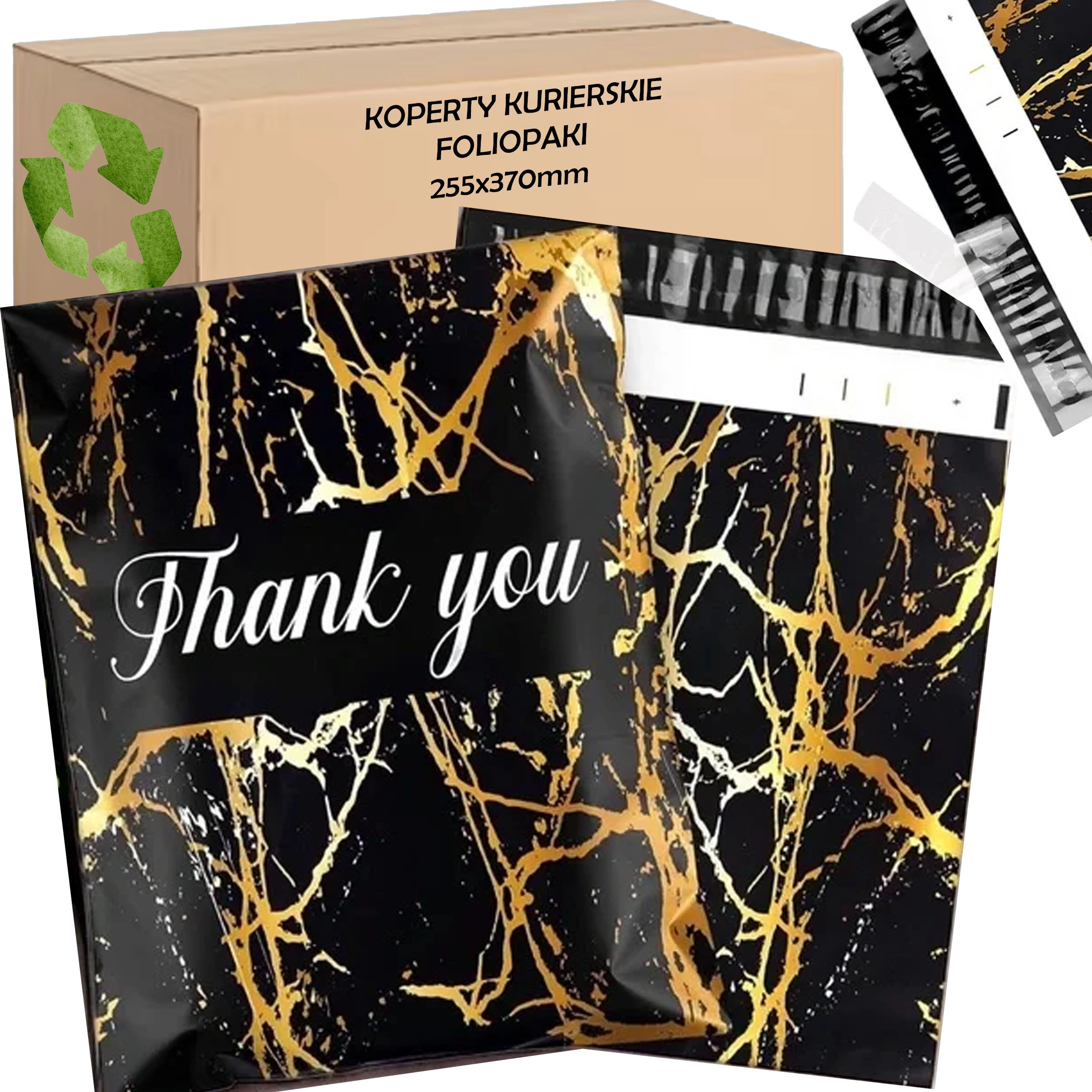 Căutați o soluție de ambalare fiabilă pentru coletele dvs.? Aceste plicuri de curierat combină durabilitatea, siguranța și un aspect profesional. Suprafața neagră mată cu motiv de marmură aurie și mesajul de mulțumire Thank You are un aspect reprezentativ și amplifică experiența de cumpărare.