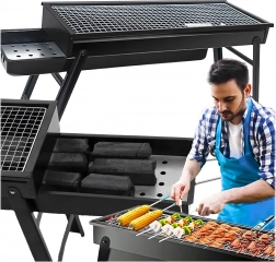 Acest grătar pliabil portabil din oțel vopsit în câmp electrostatic, de culoare neagră, este conceput pentru grătar rapid și comod în natură, în grădină sau pe terasă. Datorită construcției ușoare și picioarelor pliabile, îl pregătești pentru utilizare în câteva secunde, iar după grătar îl depozitezi sau îl transporti cu ușurință.