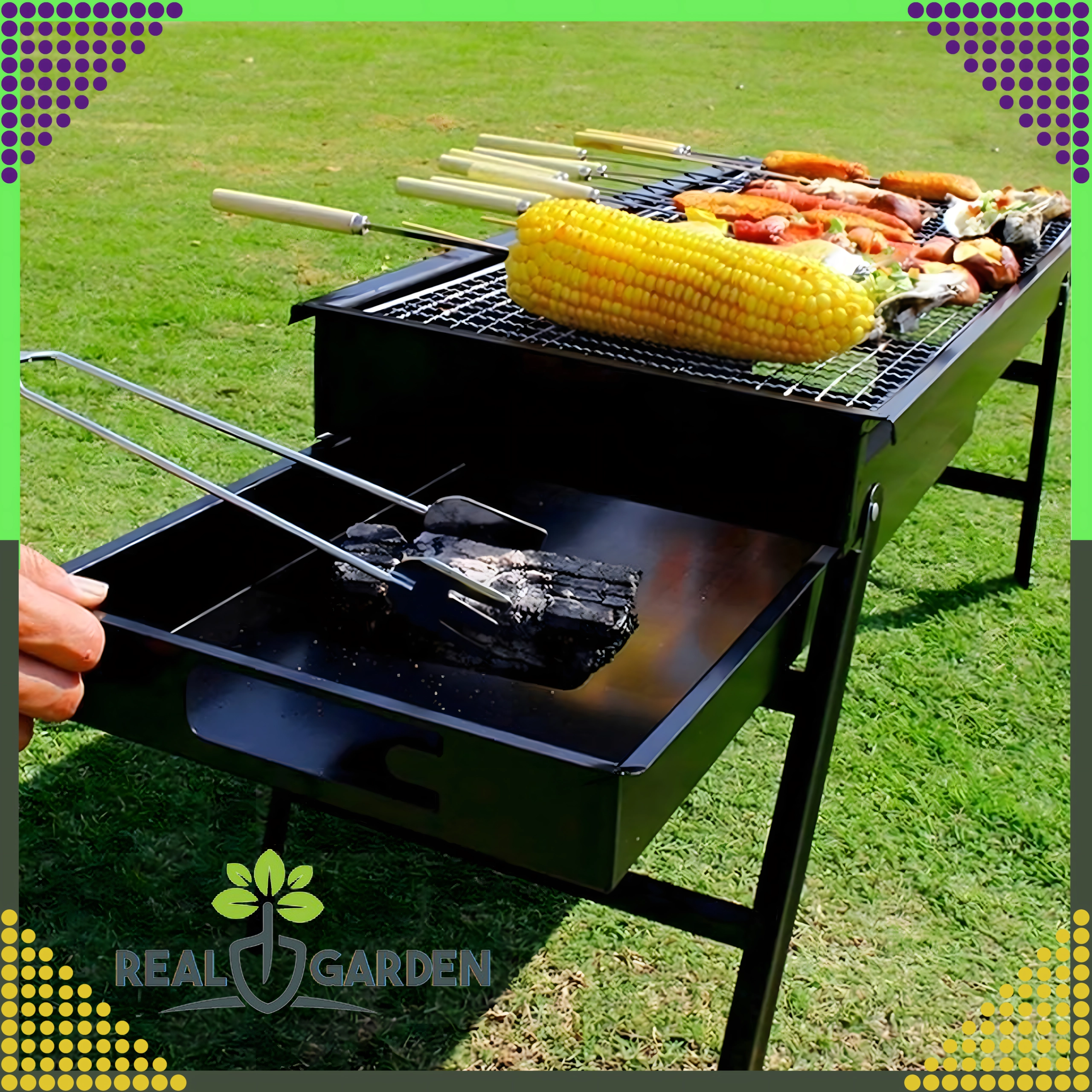 Construcția practică, cu grătar inferior și tavă pentru cărbuni, asigură căldură stabilă și gătire uniformă. Grătarul este potrivit pentru cărbuni și brichete și oferă suficient spațiu pentru preparatele preferate – de la frigărui și legume până la carne și pește.