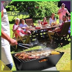 Acest grătar portabil pe cărbuni este partenerul perfect atât pentru excursii în natură, cât și pentru grădina de acasă. Datorită construcției inteligente, după pliere se transformă într-o servietă compactă, astfel încât se transportă și se depozitează comod. Doar îl deschizi, adaugi cărbuni sau brichete și în câteva clipe poți începe grătarul.