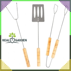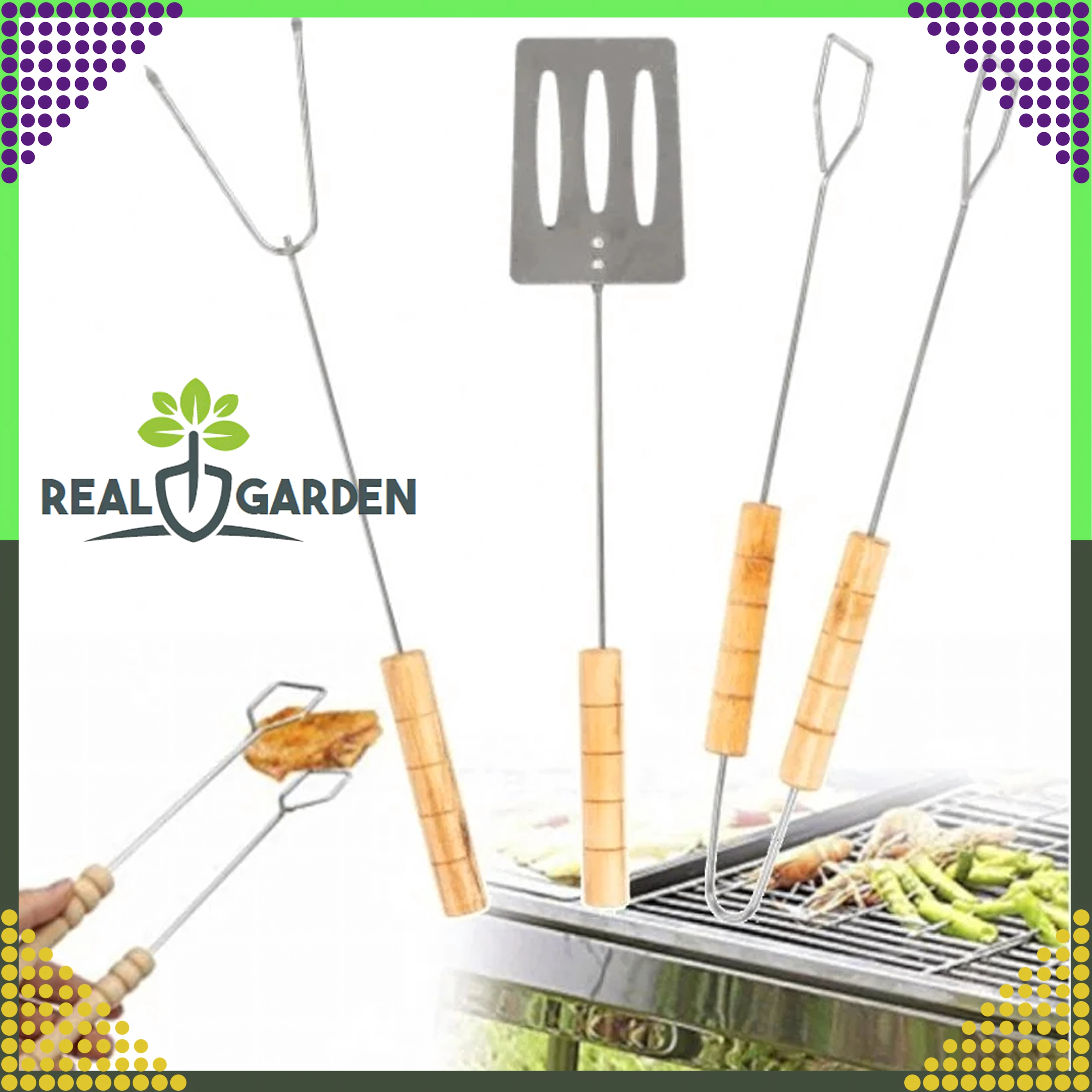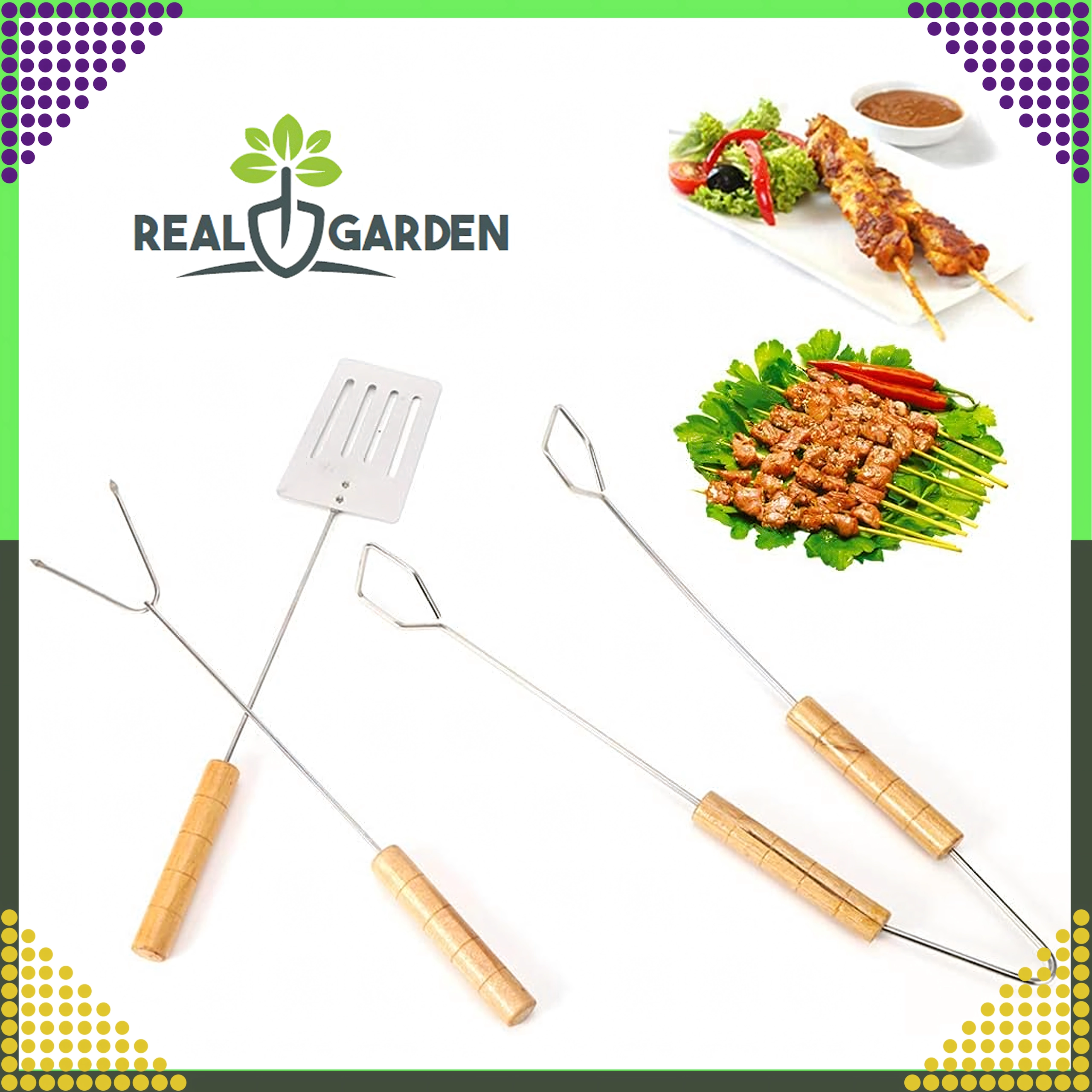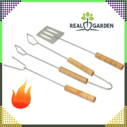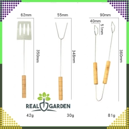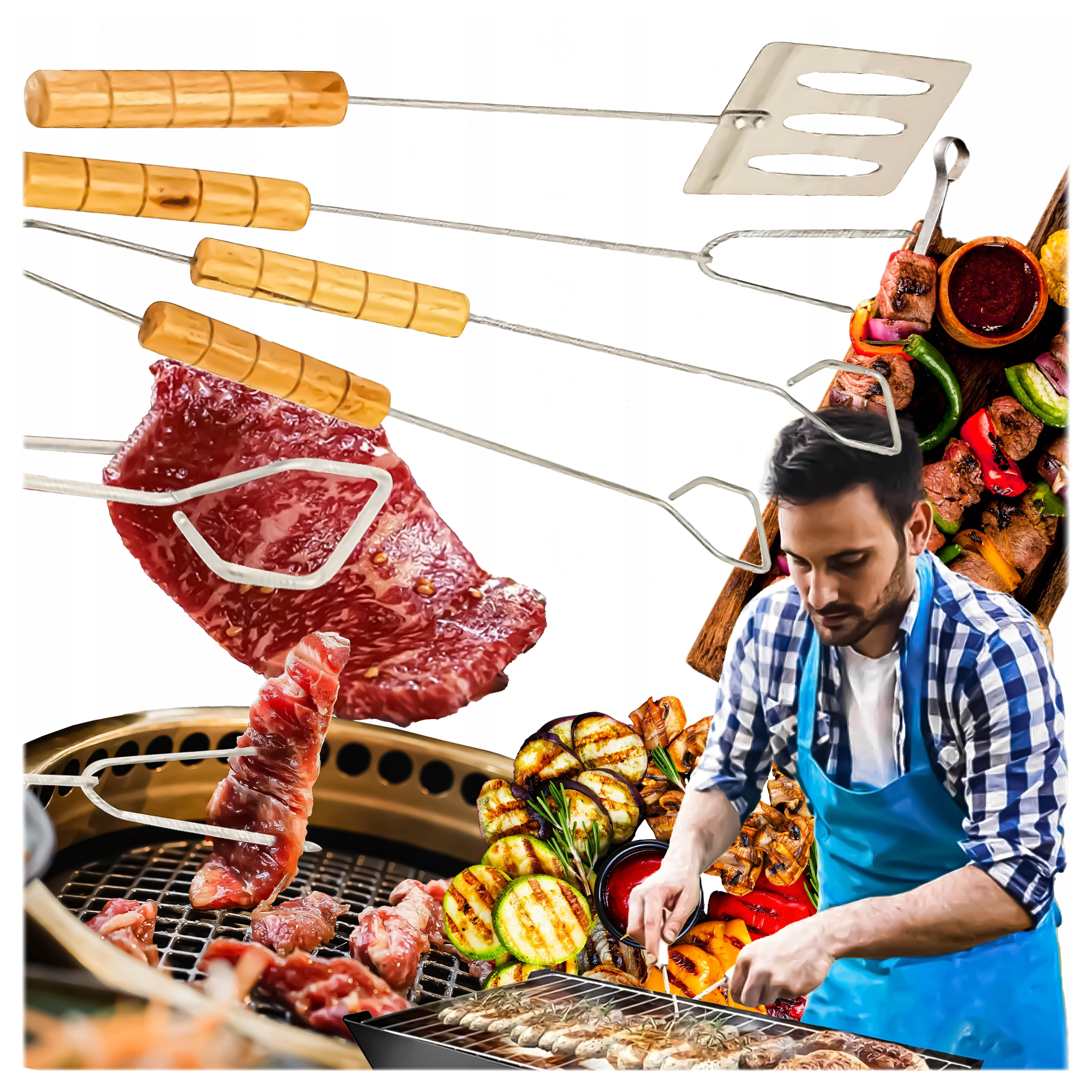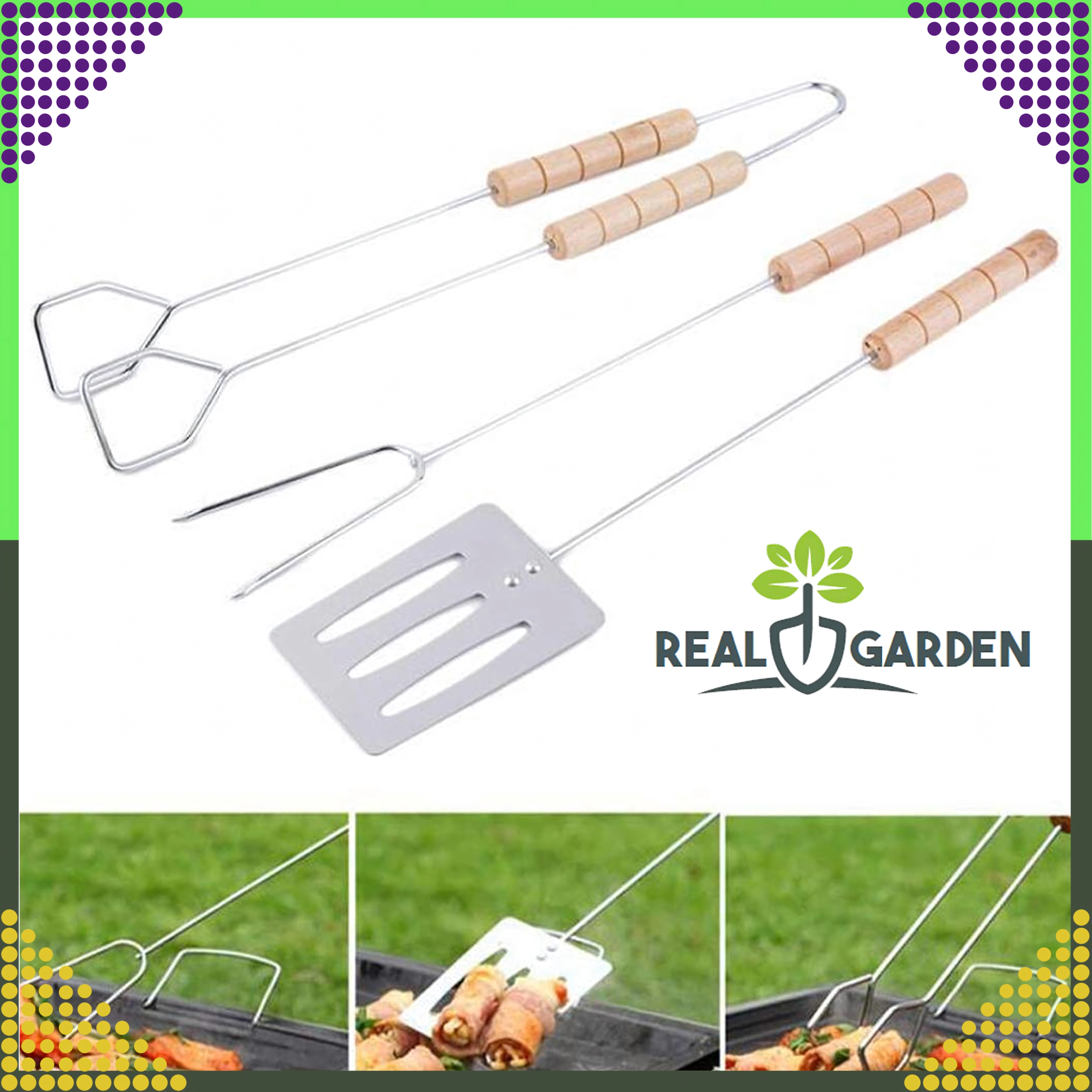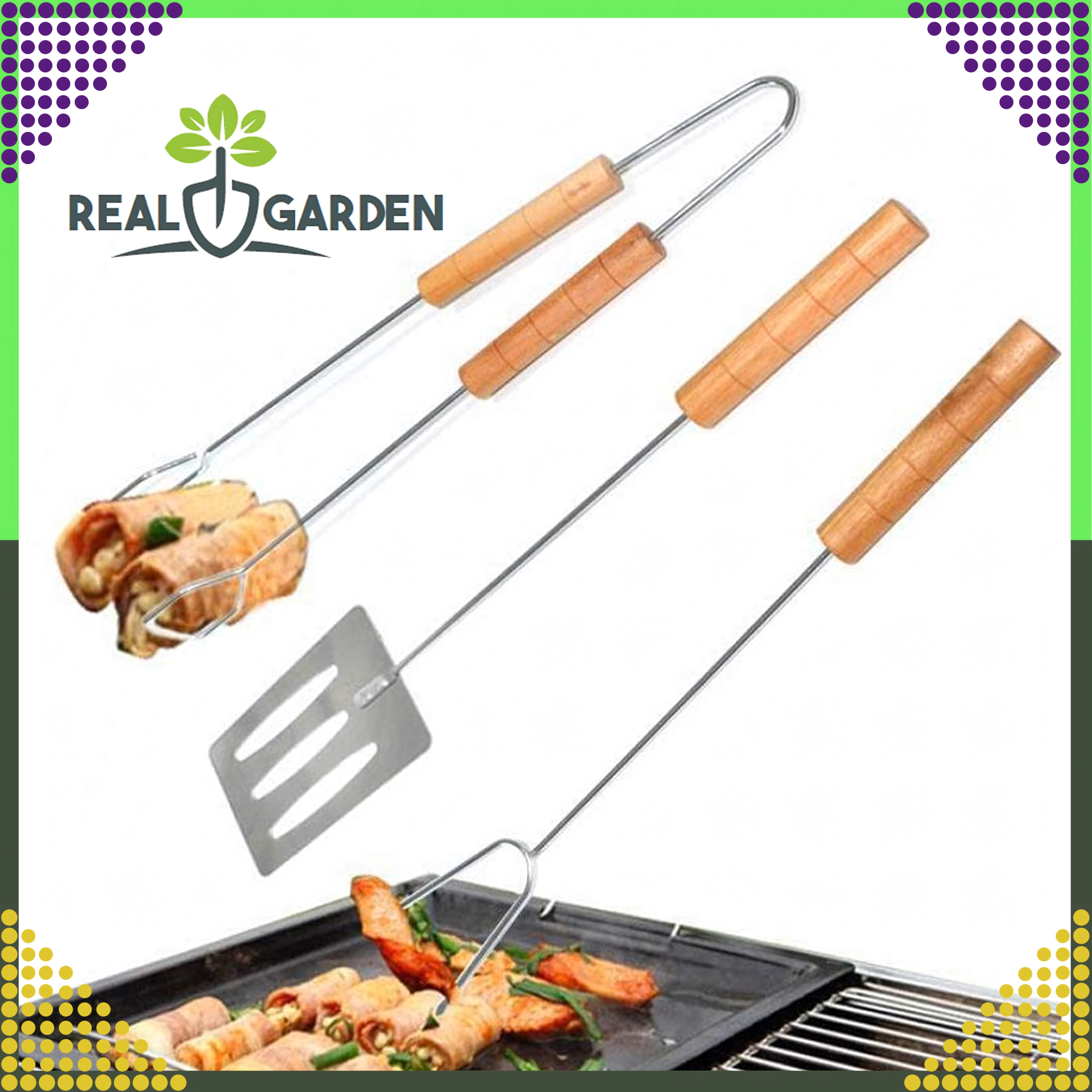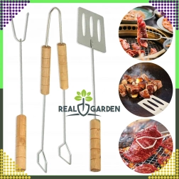 Setul practic de ustensile pentru grătar 3‑în‑1 transformă fiecare grătar într-o plăcere. Conține clește, spatulă și furcă din oțel inoxidabil cu mânere din lemn confortabile pentru priză fermă și manipulare sigură la prepararea cărnii și a legumelor.