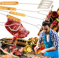 Acest set universal este ideal pentru fiecare pasionat de grătar. Oțelul inoxidabil de calitate garantează durabilitate și întreținere ușoară, în timp ce mânerele din lemn, ergonomice, oferă confort chiar și la utilizare prelungită. Pregătește burgeri, frigărui sau legume ca un profesionist – ușor și cu control deplin.