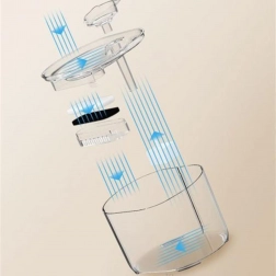 Sistemul de filtrare pe mai multe niveluri captează părul, impuritățile și ajută la reducerea mirosurilor și a gusturilor nedorite. Jetul continuu sau luciul fin al apei (în funcție de setarea duzei) motivează animalele să bea mai des, contribuind la sănătatea tractului urinar și la vitalitatea generală.