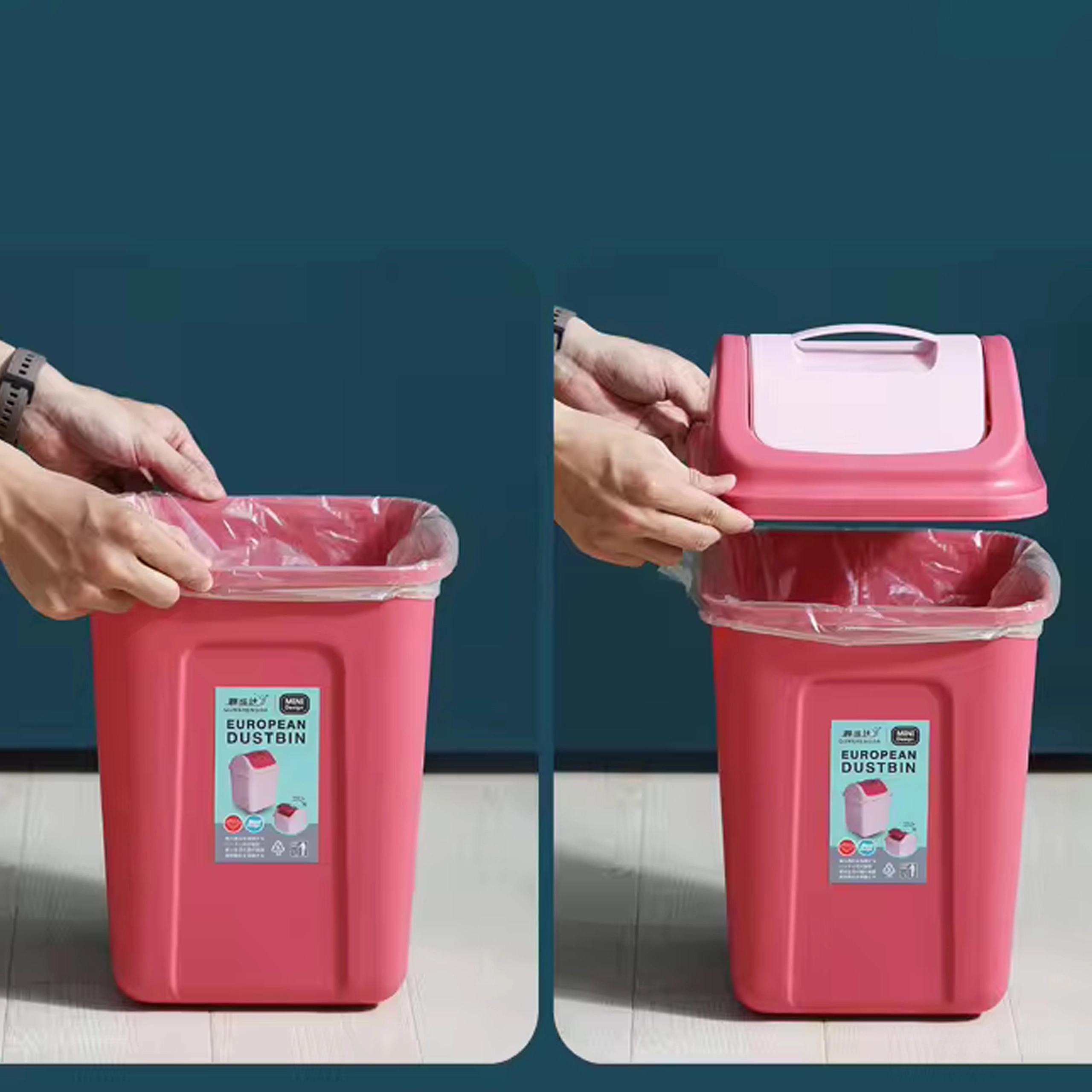 Capacul basculant permite aruncarea comodă a deșeurilor fără a scoate capacul și ajută la menținerea mirosurilor sub control.