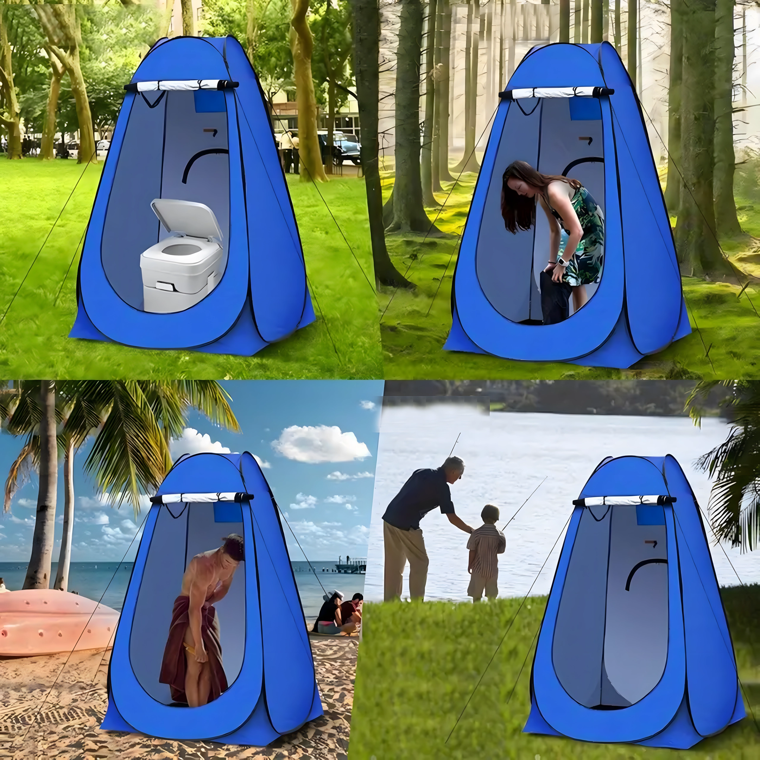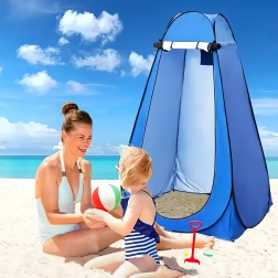 Vă oferă un spațiu discret în timpul campingului, pe plajă și la festivaluri. Construcția pop-up se montează în câteva secunde și se pliază la fel de rapid într-un ambalaj plat. Țesătura ușoară și bețele flexibile facilitează transportul și manipularea.