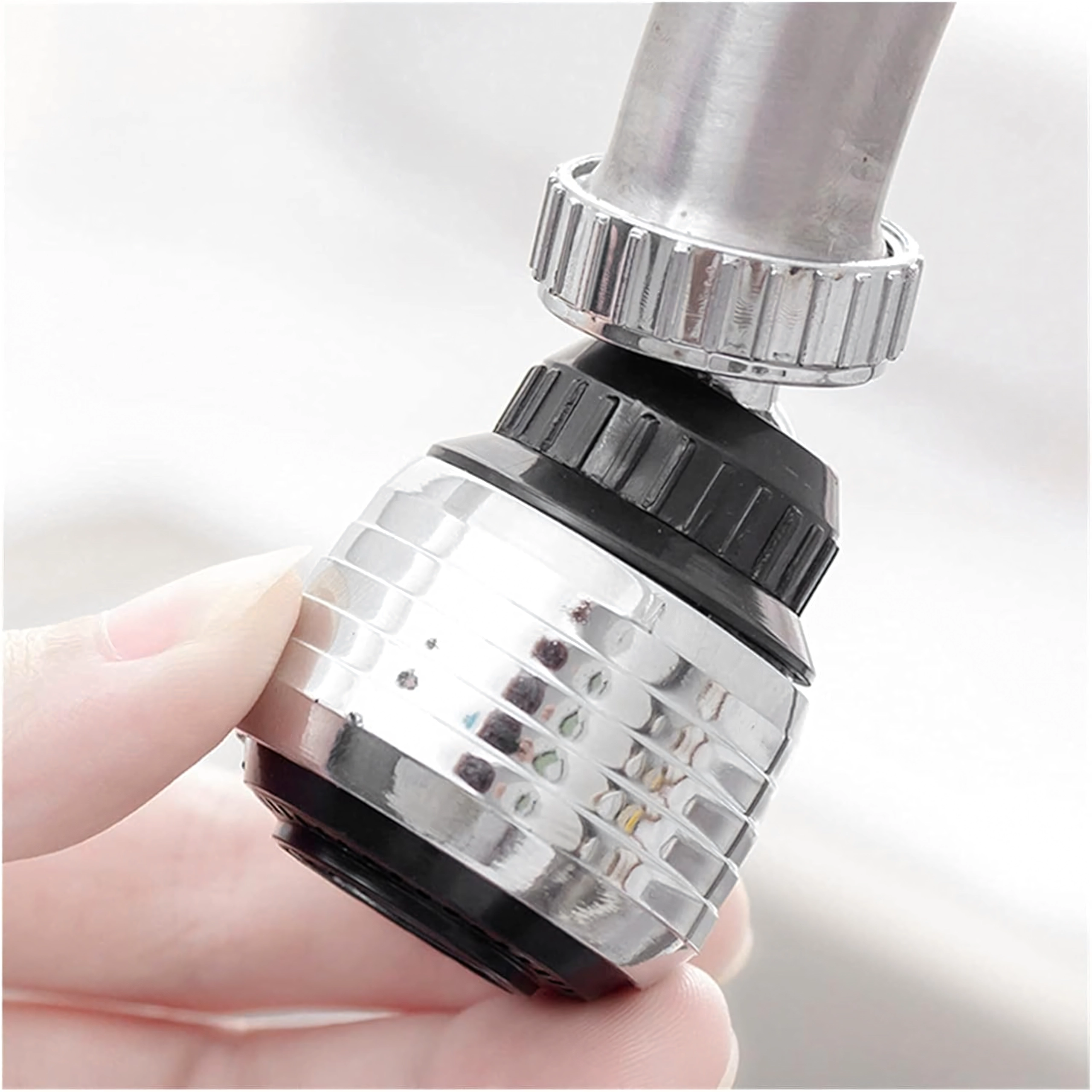 Instalarea durează o clipă: fără unelte, prin înșurubare pe gura de evacuare a bateriilor standard. Construcția metalică de calitate cu componente rezistente asigură o durată lungă de viață și performanță stabilă, iar economia de apă de până la 30% reduce facturile fără a compromite confortul.