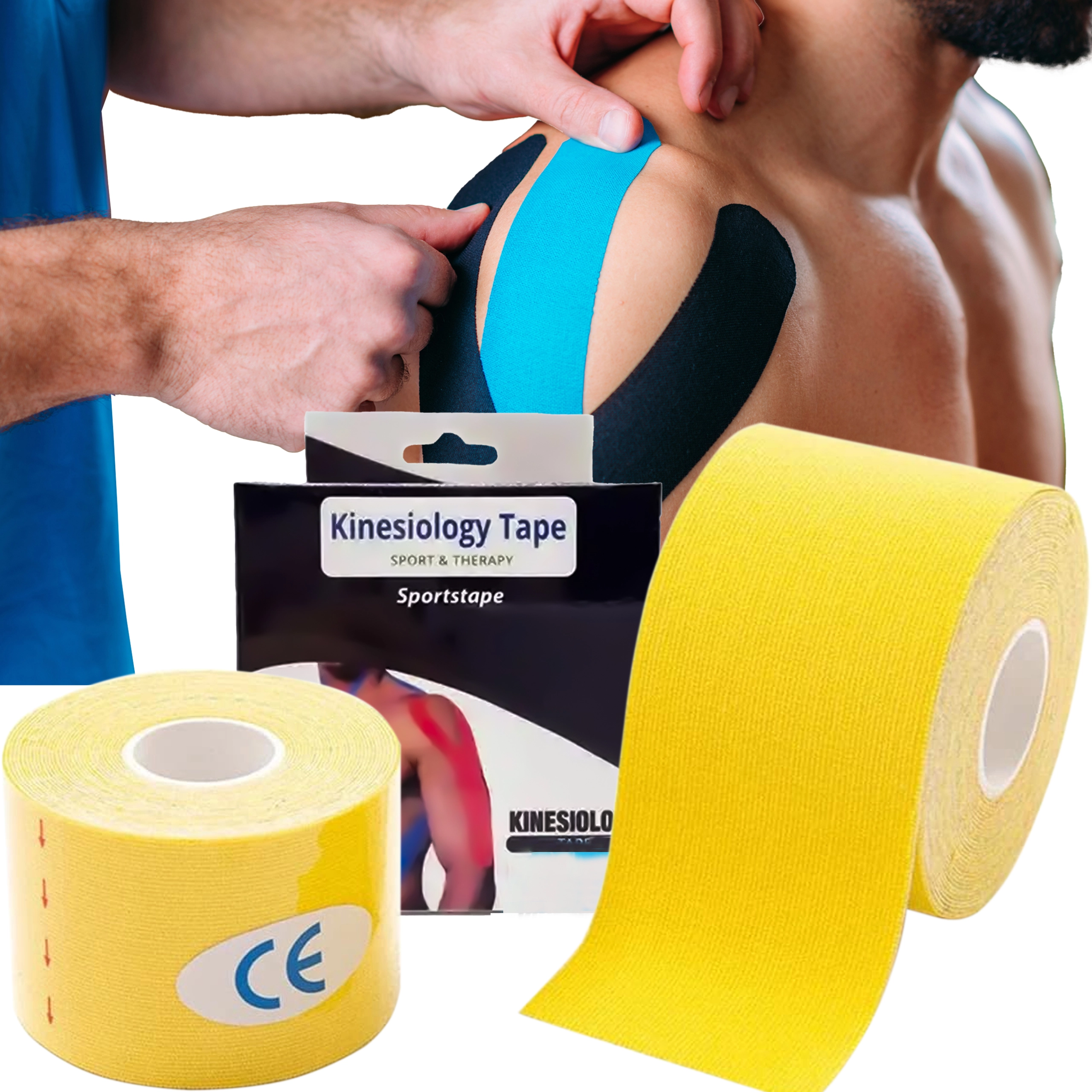 Bandă kinesiologică profesională pentru taping kinezio în îngrijire medicală și sportivă. Construcție din bumbac, elastică și respirabilă, cu adeziv acrilic hipoalergenic, care urmărește mișcarea, oferă stabilitate mușchilor și articulațiilor și ajută la îmbunătățirea recuperării. Lățime 5 cm, lungime 5 m, fără latex și ușor de tăiat în formele necesare.