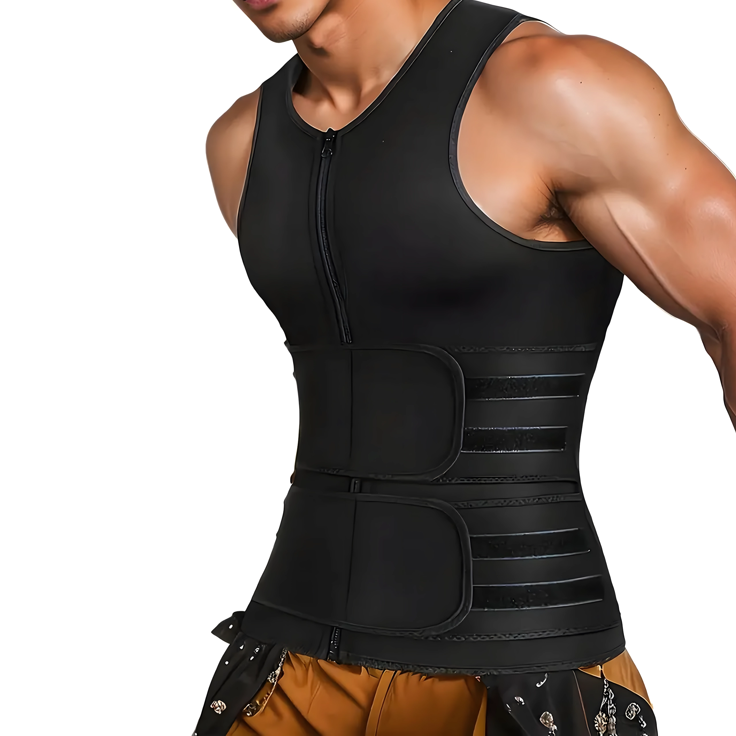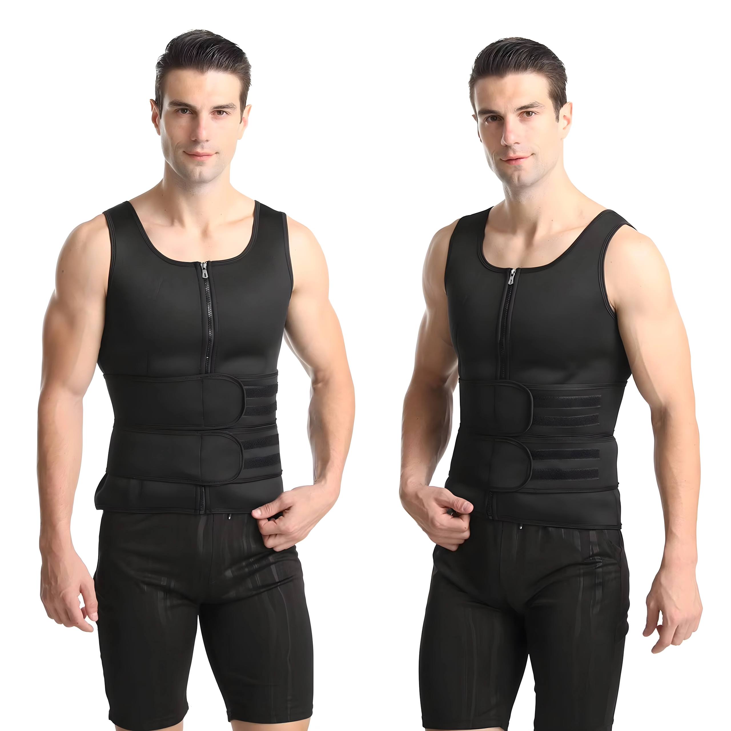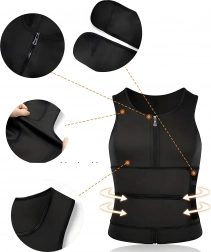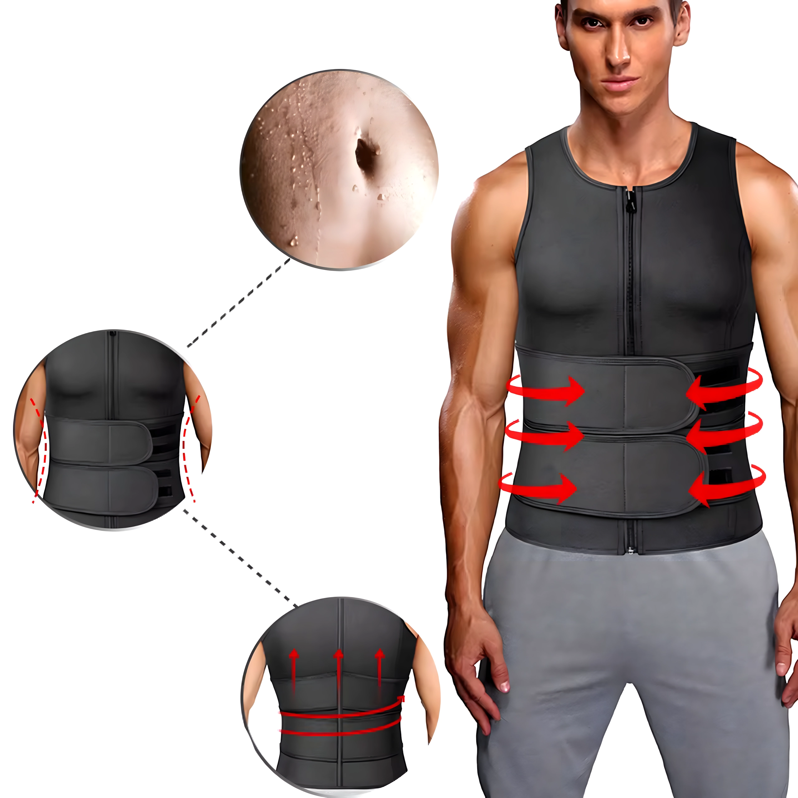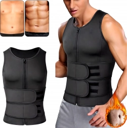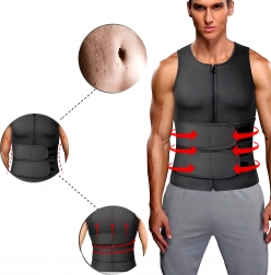 Această vestă de saună compresivă pentru bărbați, realizată din neopren de calitate, crește temperatura corpului în timpul antrenamentului, favorizând transpirația accelerată și modelarea eficientă a taliei. Fermoarul pe toată lungimea ușurează îmbrăcarea, iar cele două benzi late, reglabile, cu arici, permit setarea precisă a nivelului de strângere în zona abdomenului și a centrului corpului.