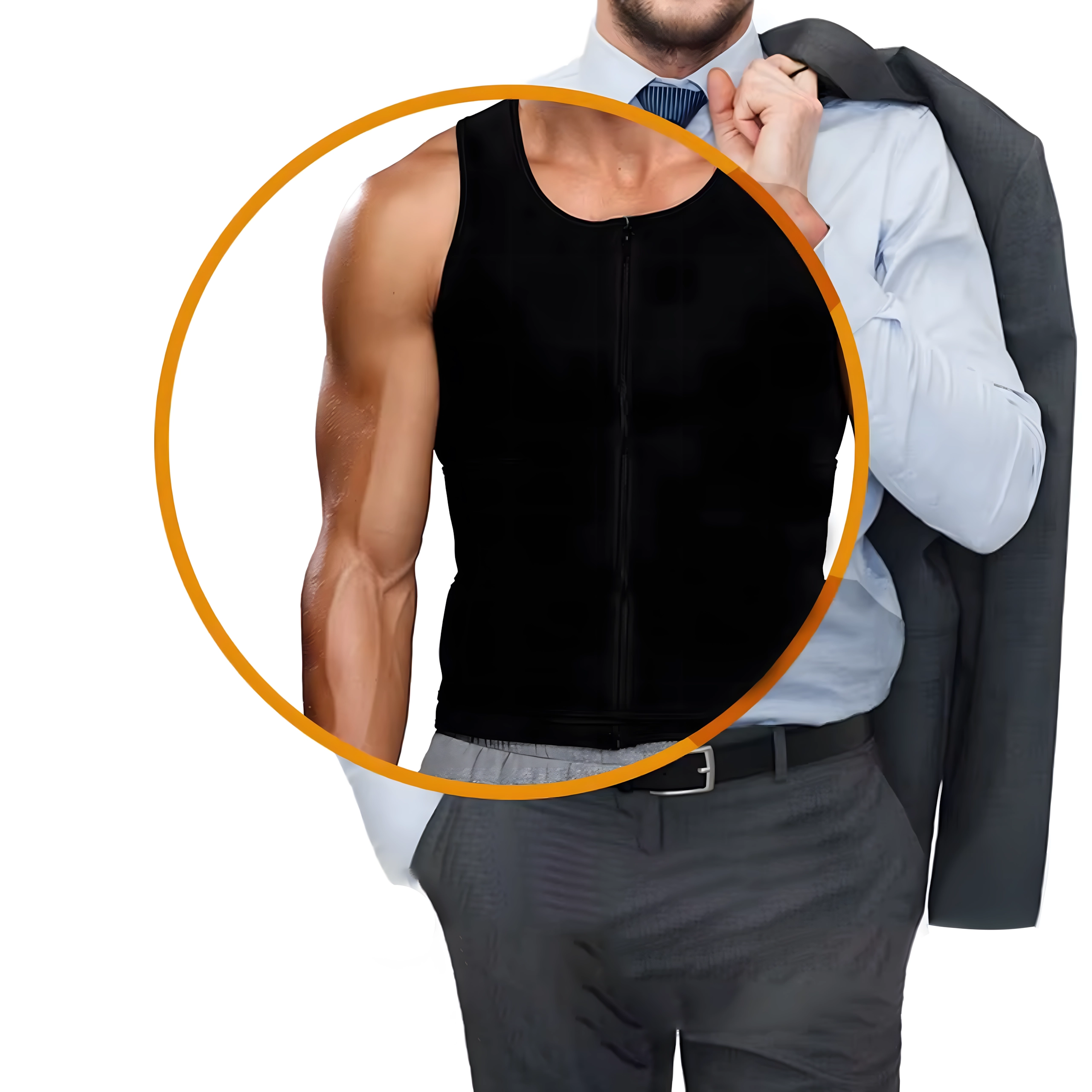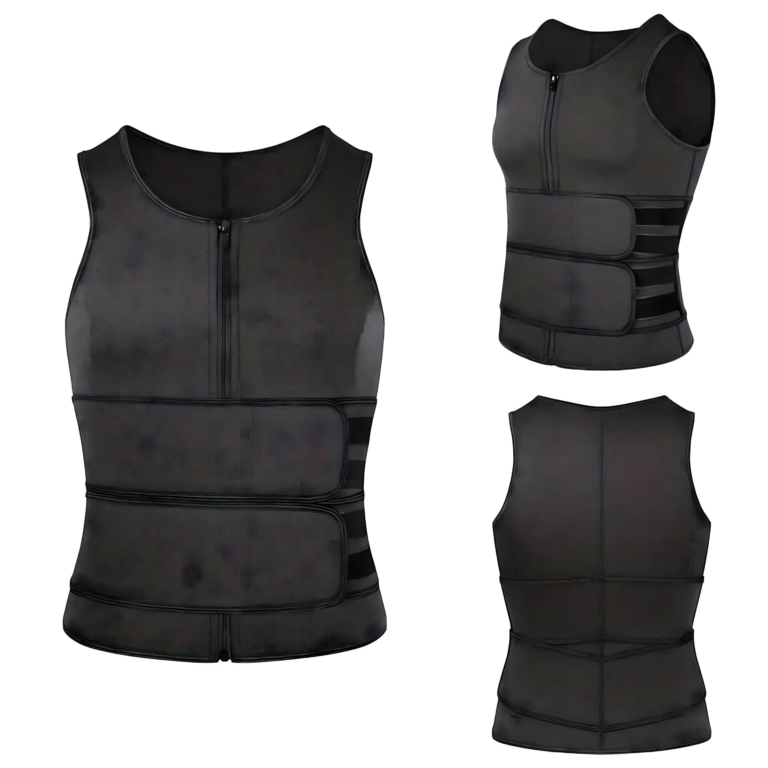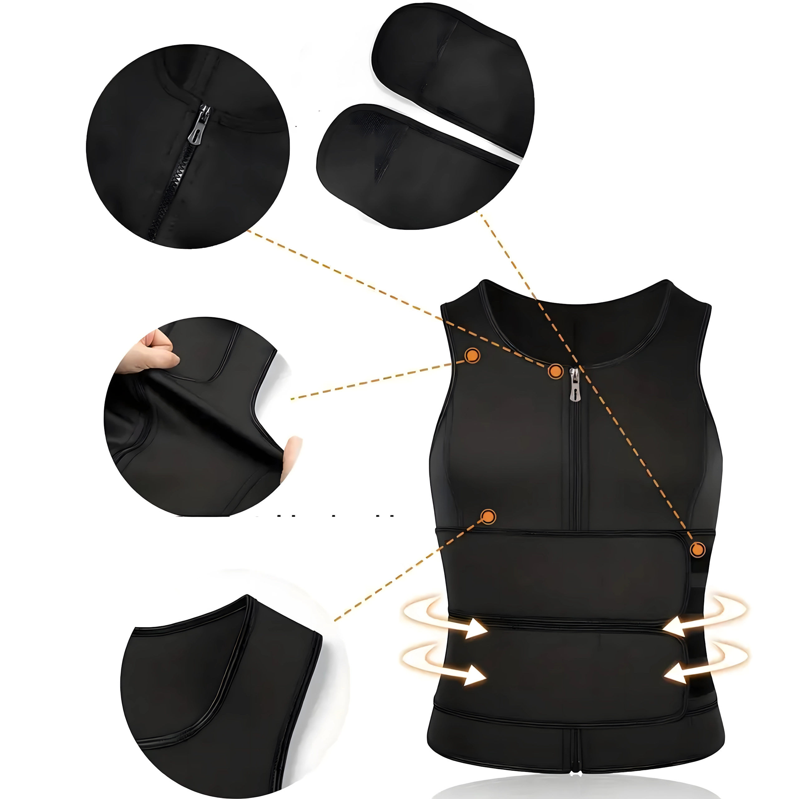 Această vestă de saună compresivă pentru bărbați, realizată din neopren de calitate, crește temperatura corpului în timpul antrenamentului, favorizând transpirația accelerată și modelarea eficientă a taliei. Fermoarul pe toată lungimea ușurează îmbrăcarea, iar cele două benzi late, reglabile, cu arici, permit setarea precisă a nivelului de strângere în zona abdomenului și a centrului corpului.