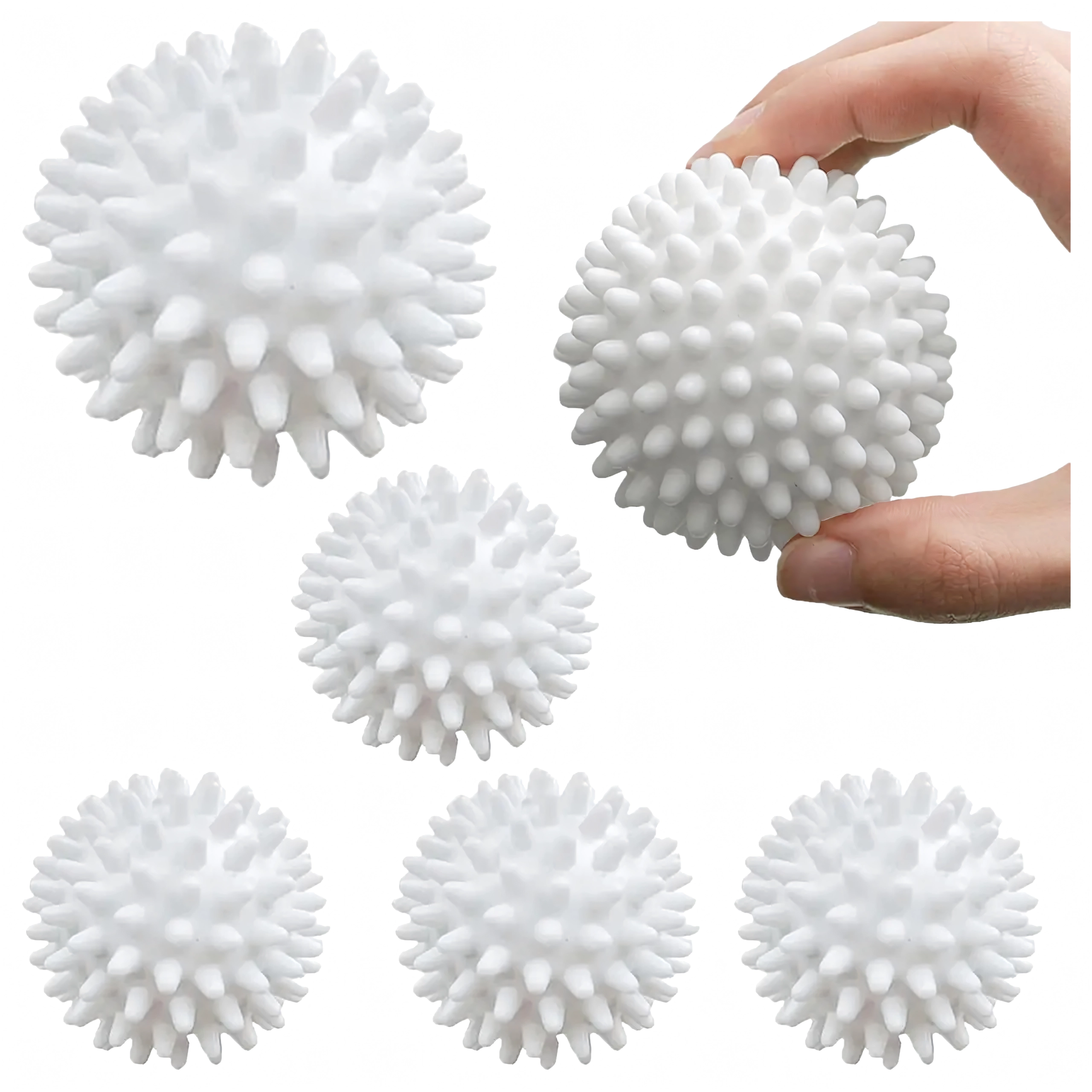 Proeminențele fine ale mingilor relaxează mecanic fibrele și lasă rufele moi și pufoase – fără chimicale și fără costuri suplimentare.